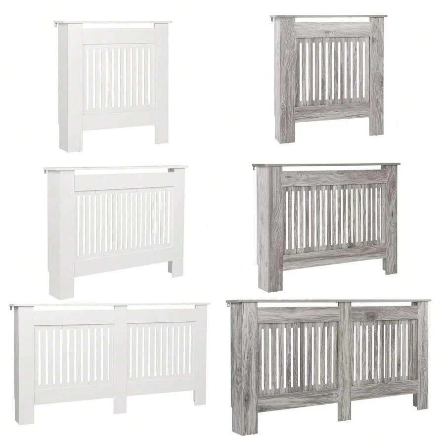 H Radiator Cover White Modern MDF Vertical Slats Wooden Top Cabinet For Living Room Bedroom Hallway