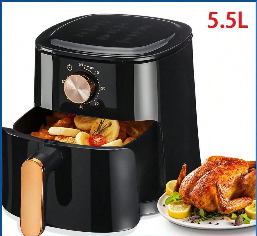 ✨5.5L Large Air Fryer Oven - 1800W Rapid Air Circulation For Oil-Free Healthy Cooking| 60-Min Timer, Non-Stick Basket & Adjustable Temp| Energy Efficient, Easy Clean Black Airfryer (UK Plug)