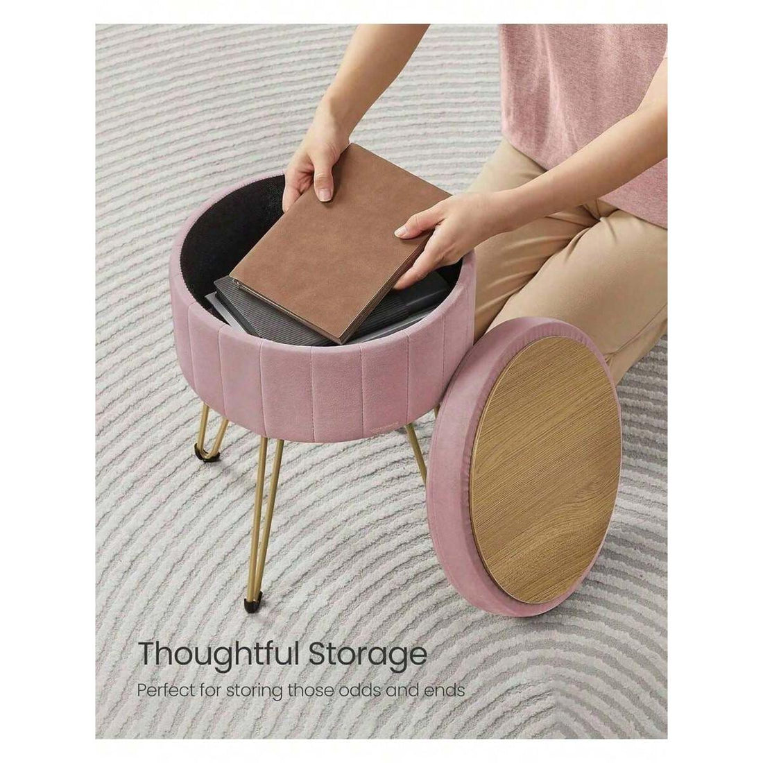 Storage Ottoman, Velvet Dressing Table Stool, 39 X 44.4 Cm (Dia. X H), Round Storage Stool Seat, 4 Metal Legs, For Dressing Room, Living Room, Bedroom, Jelly Pink Back To School Dormitory Storage
