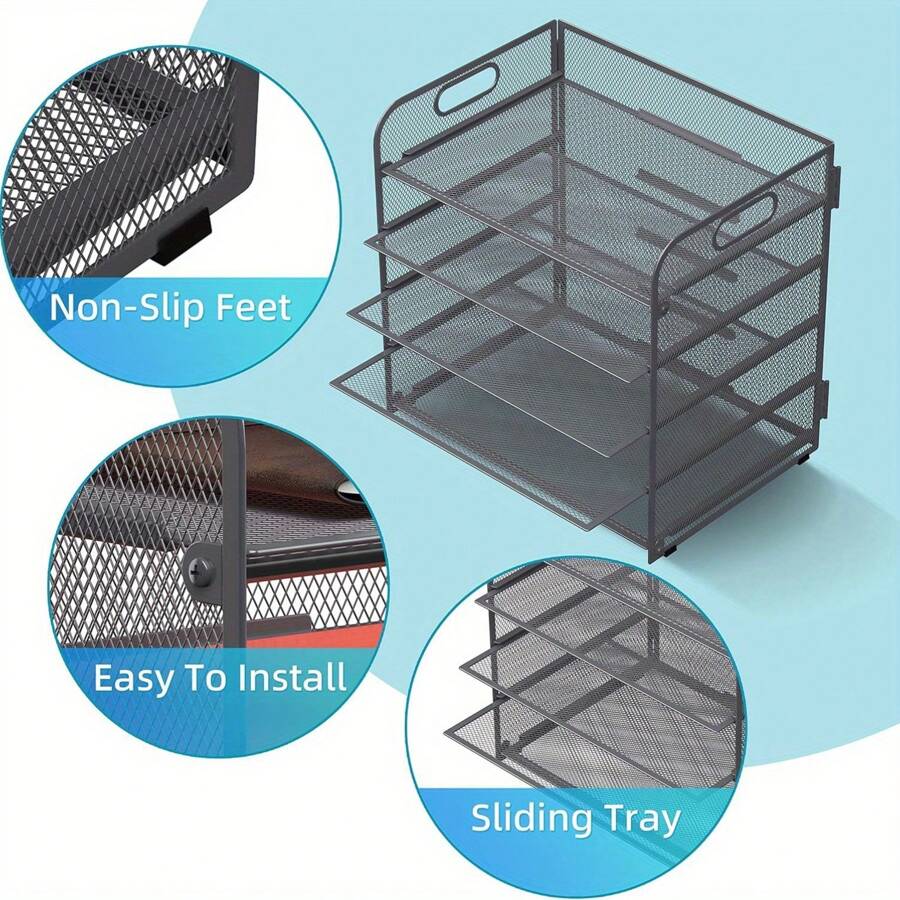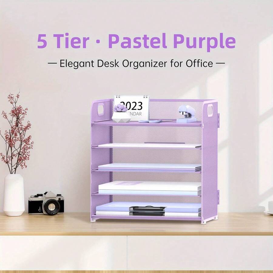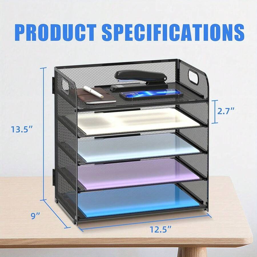 5-Tier Paper Organizer With Handle, Mesh Desk Organizer Letter Tray, Paper Tray Organizer File Organizer For A4 File Folder Back To School