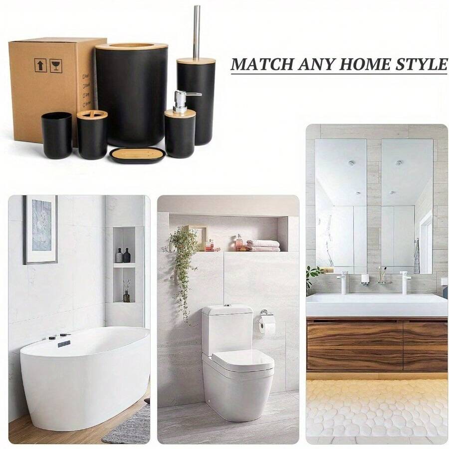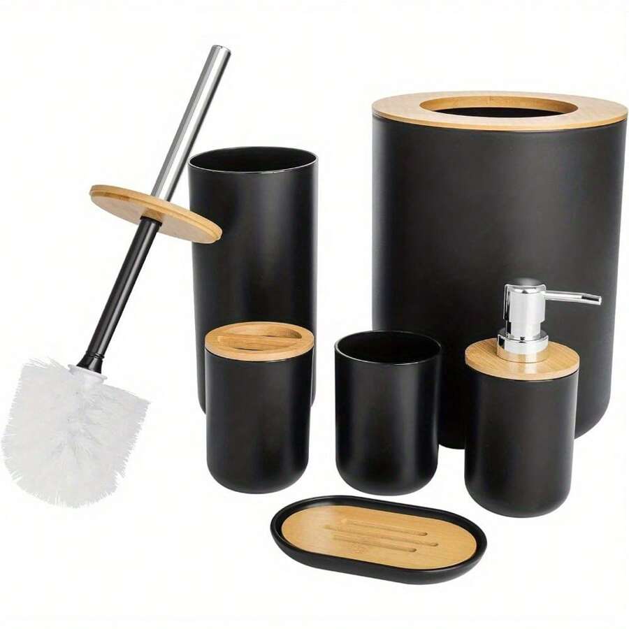 Upgrade your bathroom with this 6-piece accessory set made of high-quality PP material.