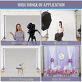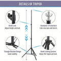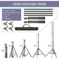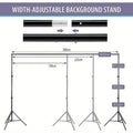 The adjustable height background stand comes with 4 independent telescopic rails, 2 tripod brackets, and 4 clips for degree and height adjustment.