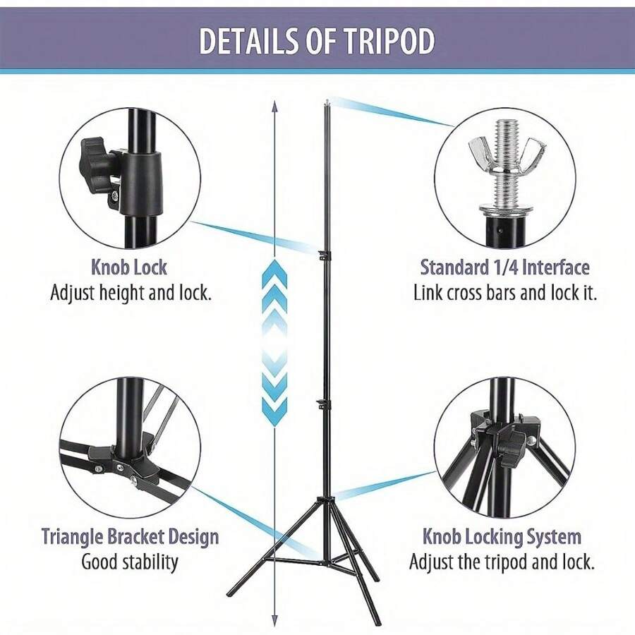 The adjustable height background stand is lightweight and easy to use, it can be installed in minutes and can be folded for storage in the bag when not in use.
