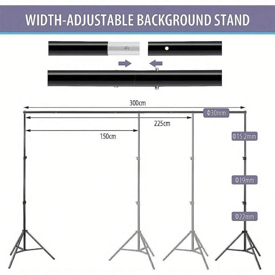 Backdrop Stand Kit 3 * 3m(9.8 * 9.8ft) Adjustable Photo Backdrop Stand Photo Video Studio Background Support System With Carrying Bag And 4 Clamps