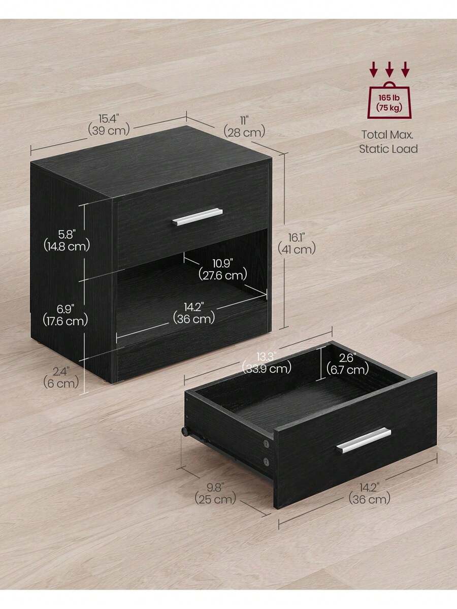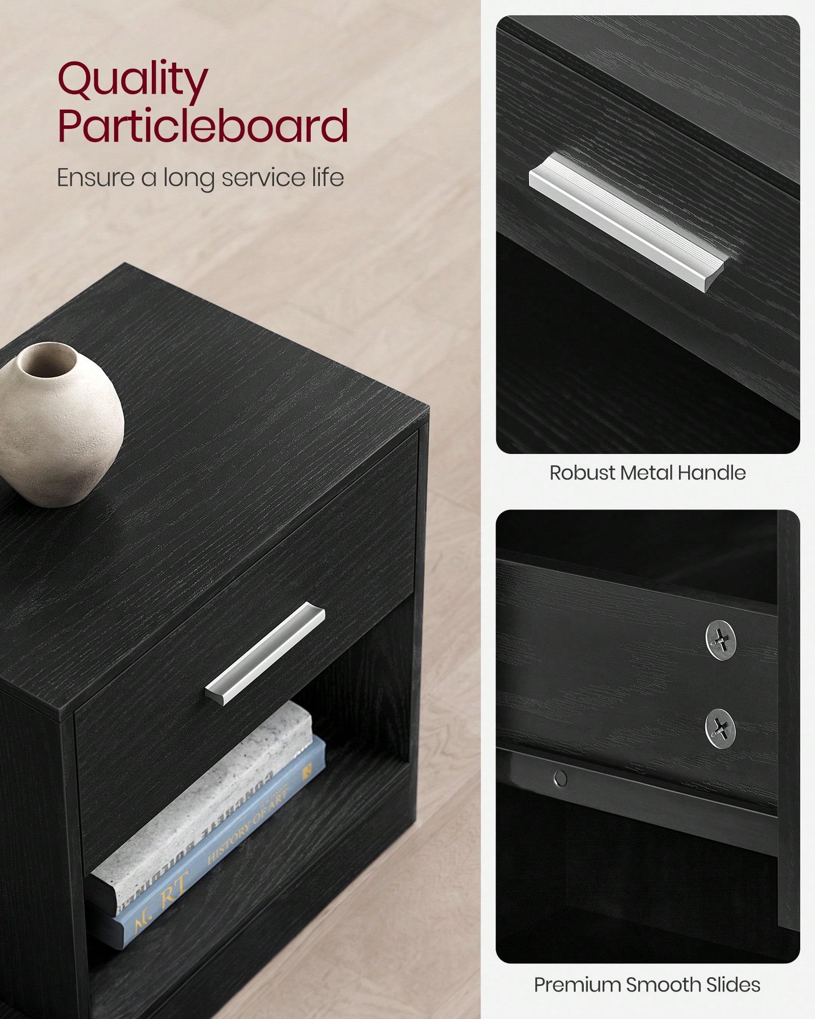 [Sturdy & Stable] Durable particleboard,quality fittings, and a robust structure give this side table high stability.It can hold up to 75 kg in total, and the drawer holds up to 5 kg