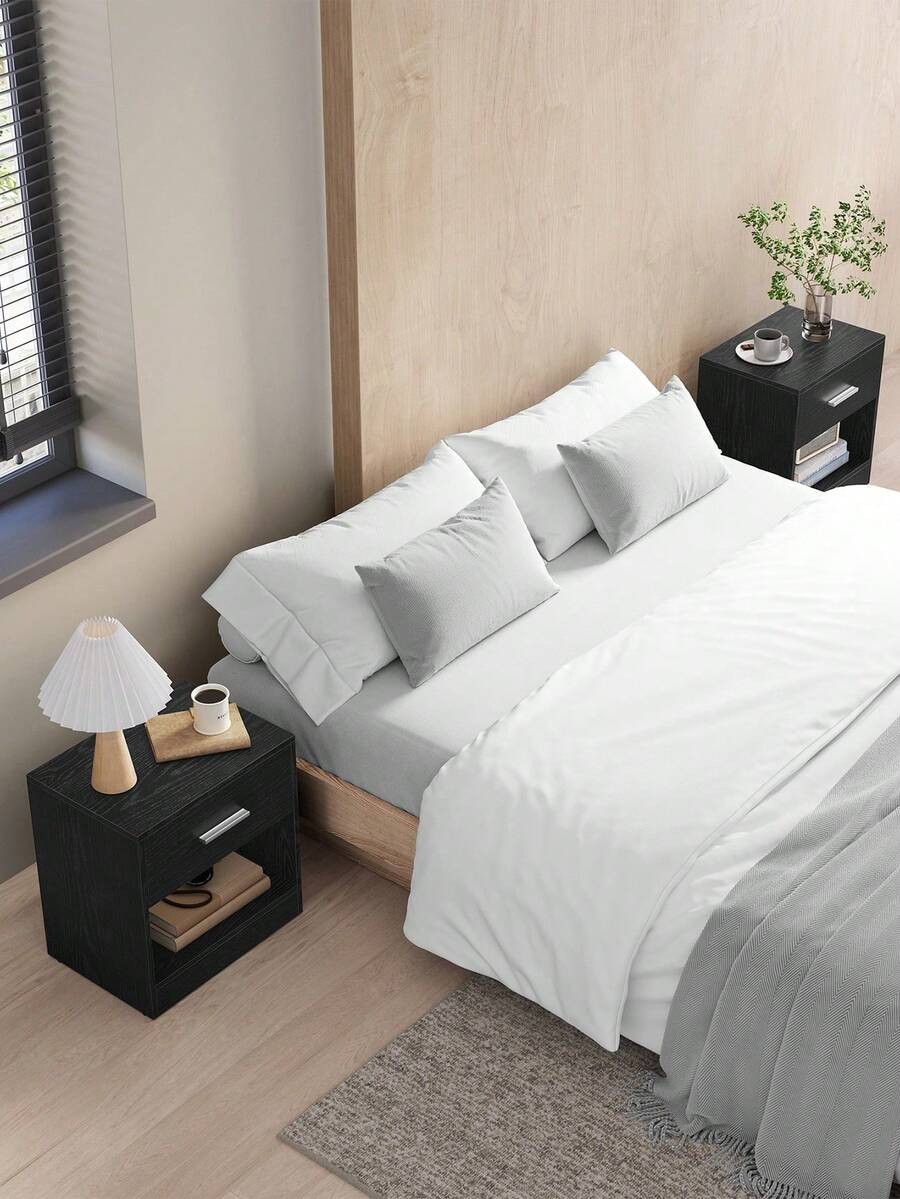 [Modern Look] With its minimalist design and clean lines, this bedside table exudes a modern vibe in your living space and can easily blend into your interior design