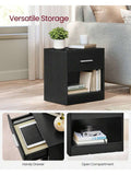 Bedside Table, Side Table With Drawer, Handle, Open Compartment, End Table, For Bedroom, Living Room, Ink Black