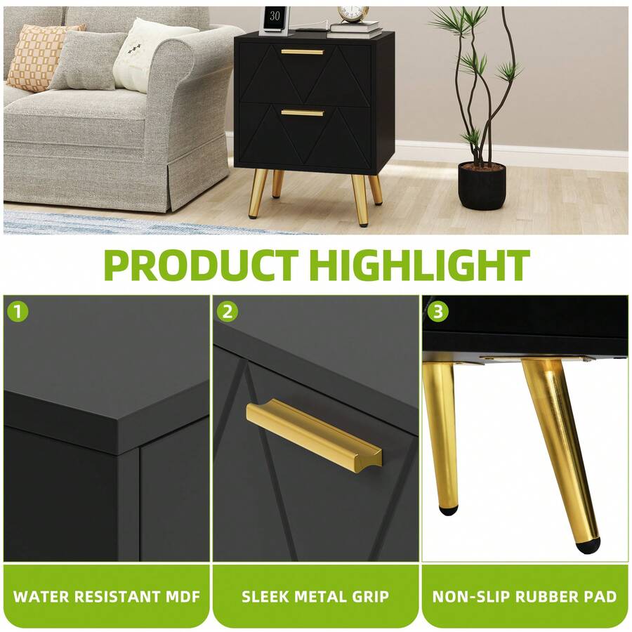 Bring modern elegance to your space with our bedside table, featuring clean lines, elegant white finish, accented with gold metal handles and legs.It's versatile as a side table, coffee table, end table, or nightstand for bedroom or living room.