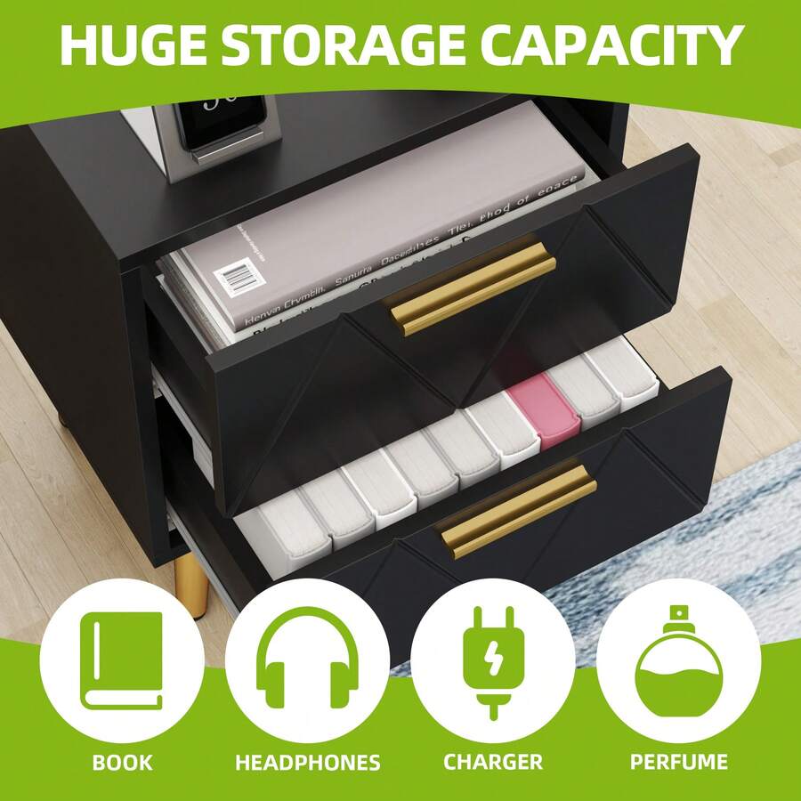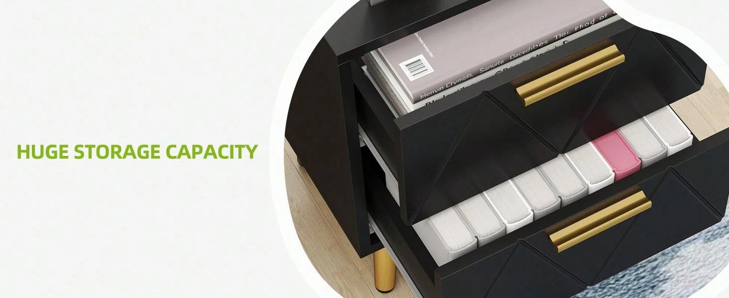 This side table features 2 drawers to store various items such as remote controls, nail kits, lip balm, razors, hair dryers, chargers, and more.The tabletop is ideal for displaying your lamp, clock, photo frame, decorations, and glasses.