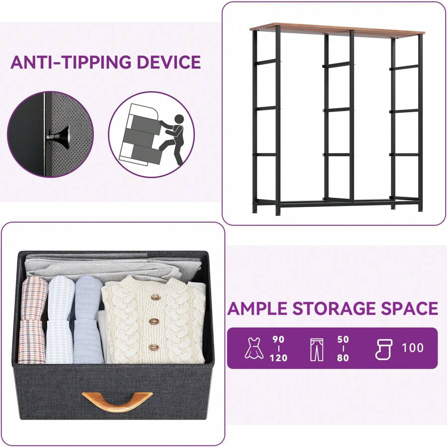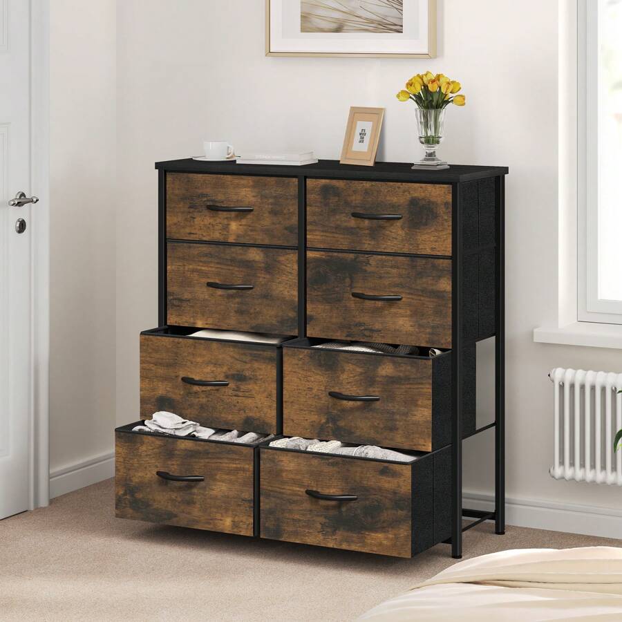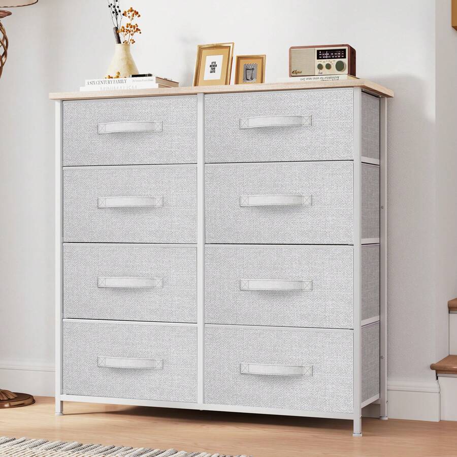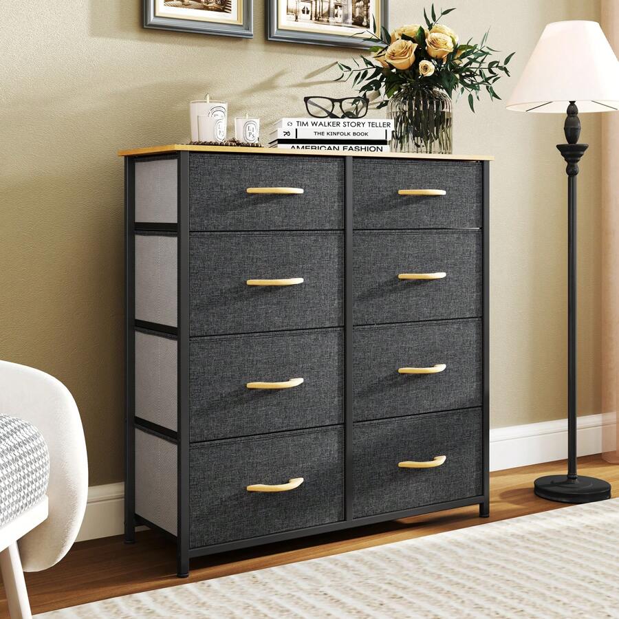 Chest Of Drawers, Fabric 8-Drawer Storage Organizer Unit For Bedroom Living Room Closet, Sturdy Steel Frame, Easy Pull Fabric Bins & Wooden Top, Fabric Dresser