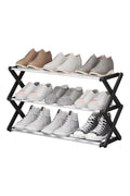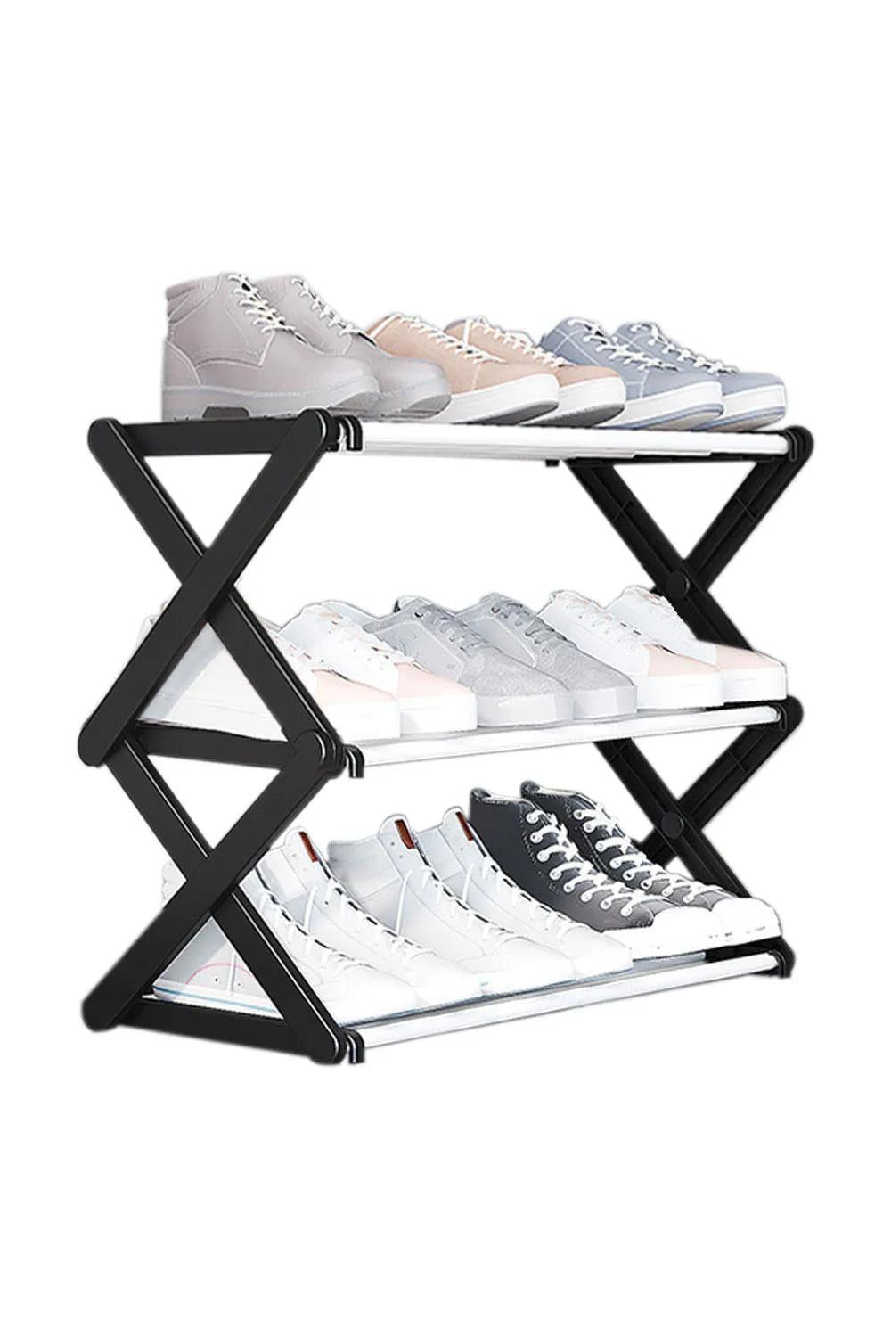 Revamp your shoe storage solution with this innovative shoe organizer .Featuring distinctive X-shaped side frames and spacious shelves, this shoe rack holds up to 9 pairs of shoes.Your sneakers, flats, heels and boots can all fit in.No tools are required to set this amazing rack up.It would make a great addition to your closet, entryway or living room.
