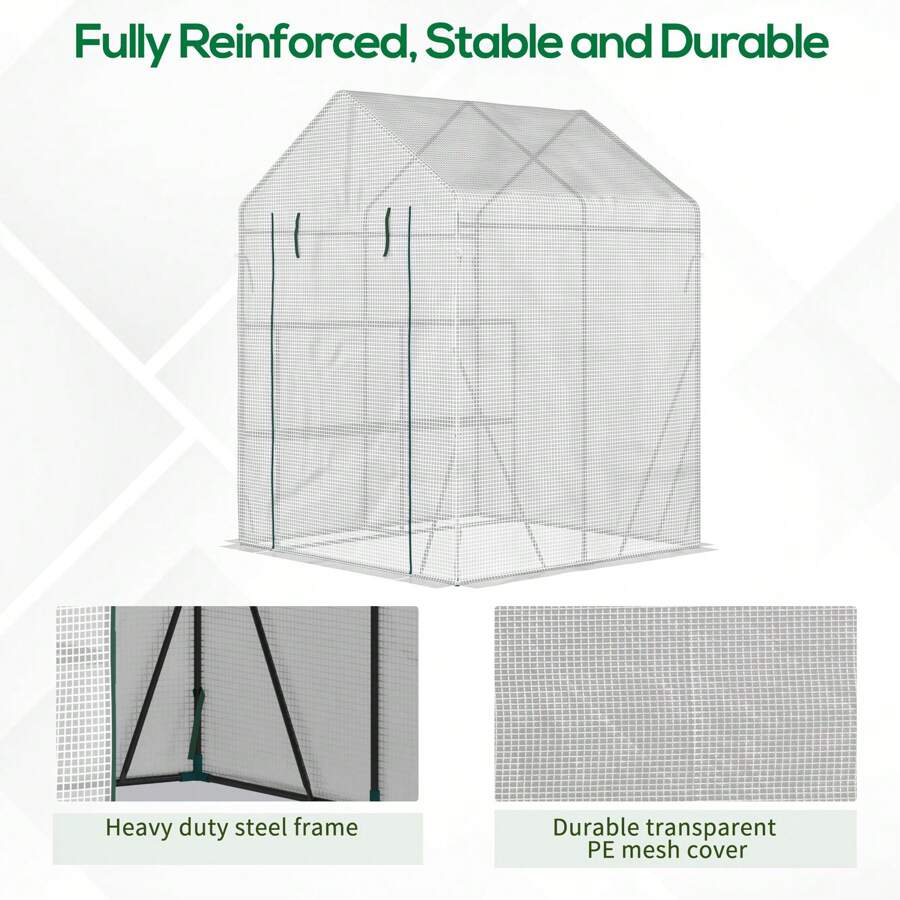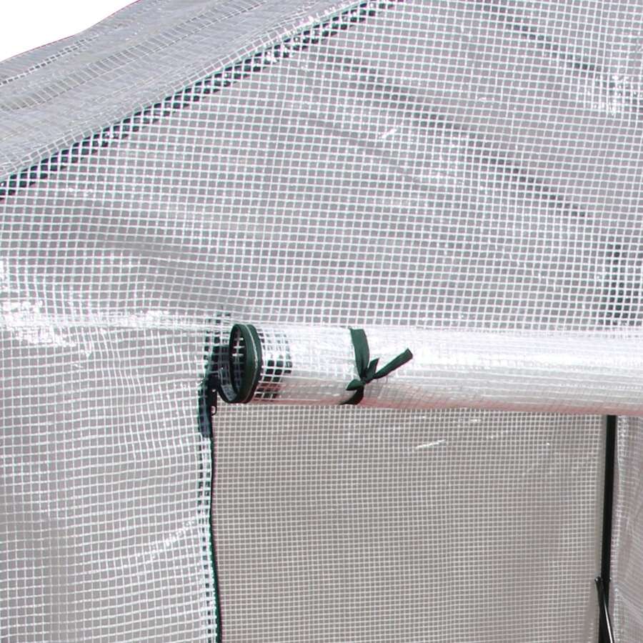 Get this portable greenhouse from to extend your growing season by protecting plants from cold and birds.It comes with a steel frame for a steady core.The PE cover creates a protective shell, holding in the heat and shielding from wind and rain.The roll-up door, with zip fastening, allows you to enter and leave to access your plants at any time.Simply put up, go and grow.Do not leave standing in heavy weather conditions.