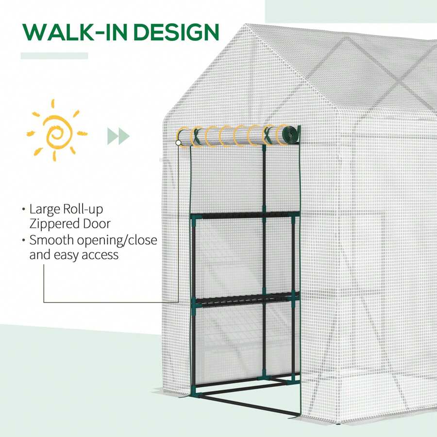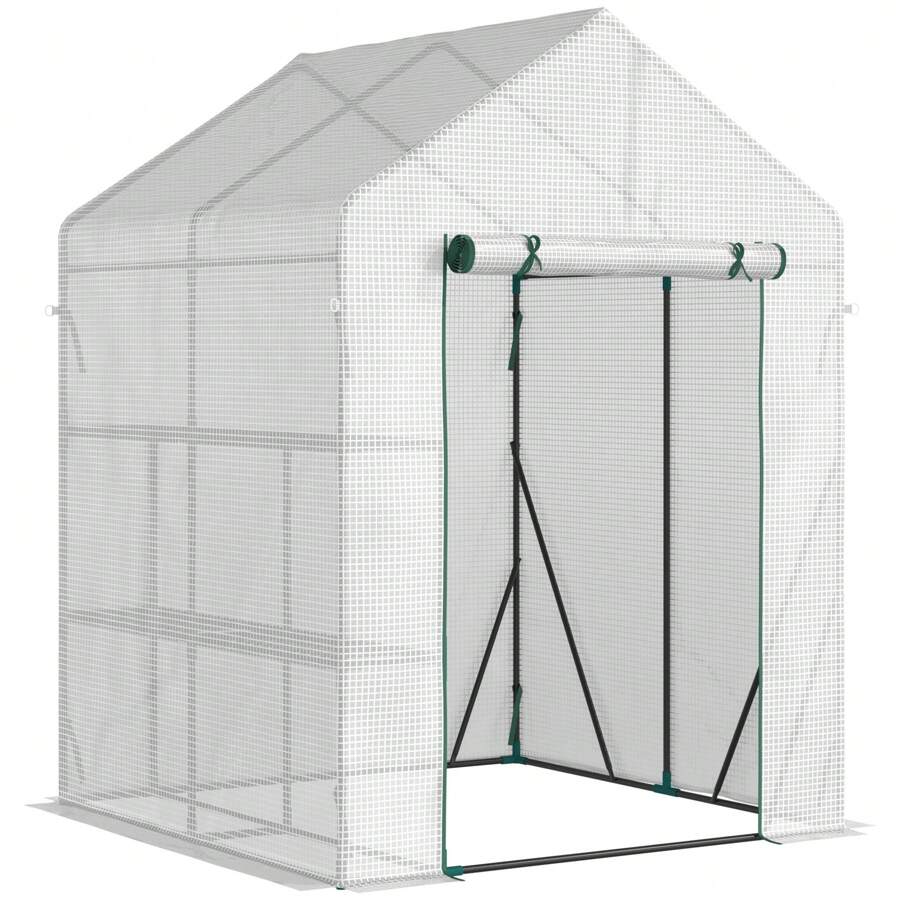 Greenhouse For Outdoor, Portable Gardening Plant Grow House With 2 Tier Shelf, Roll-Up Zippered Door, PE Cover, Green