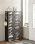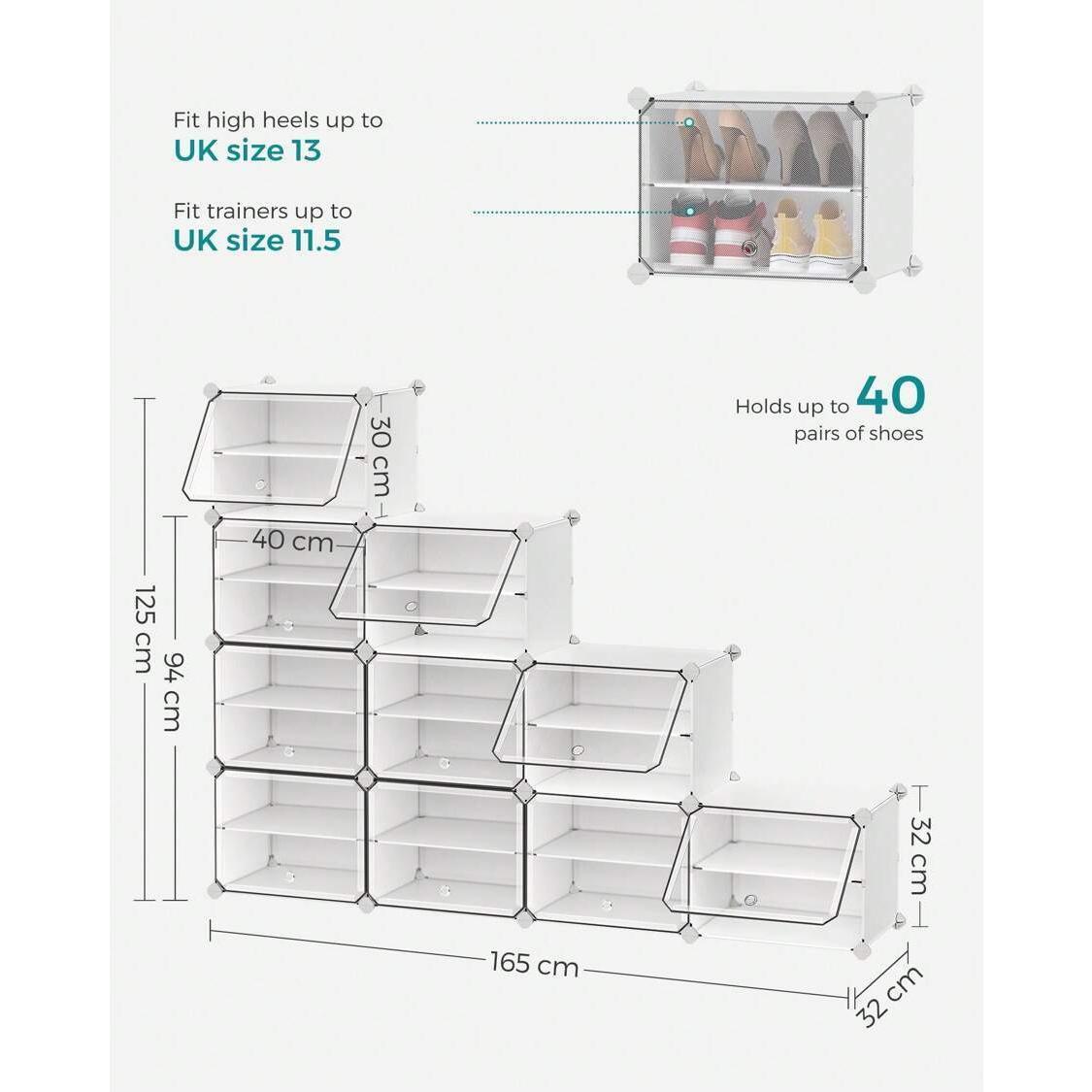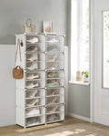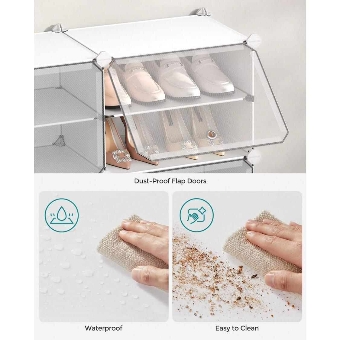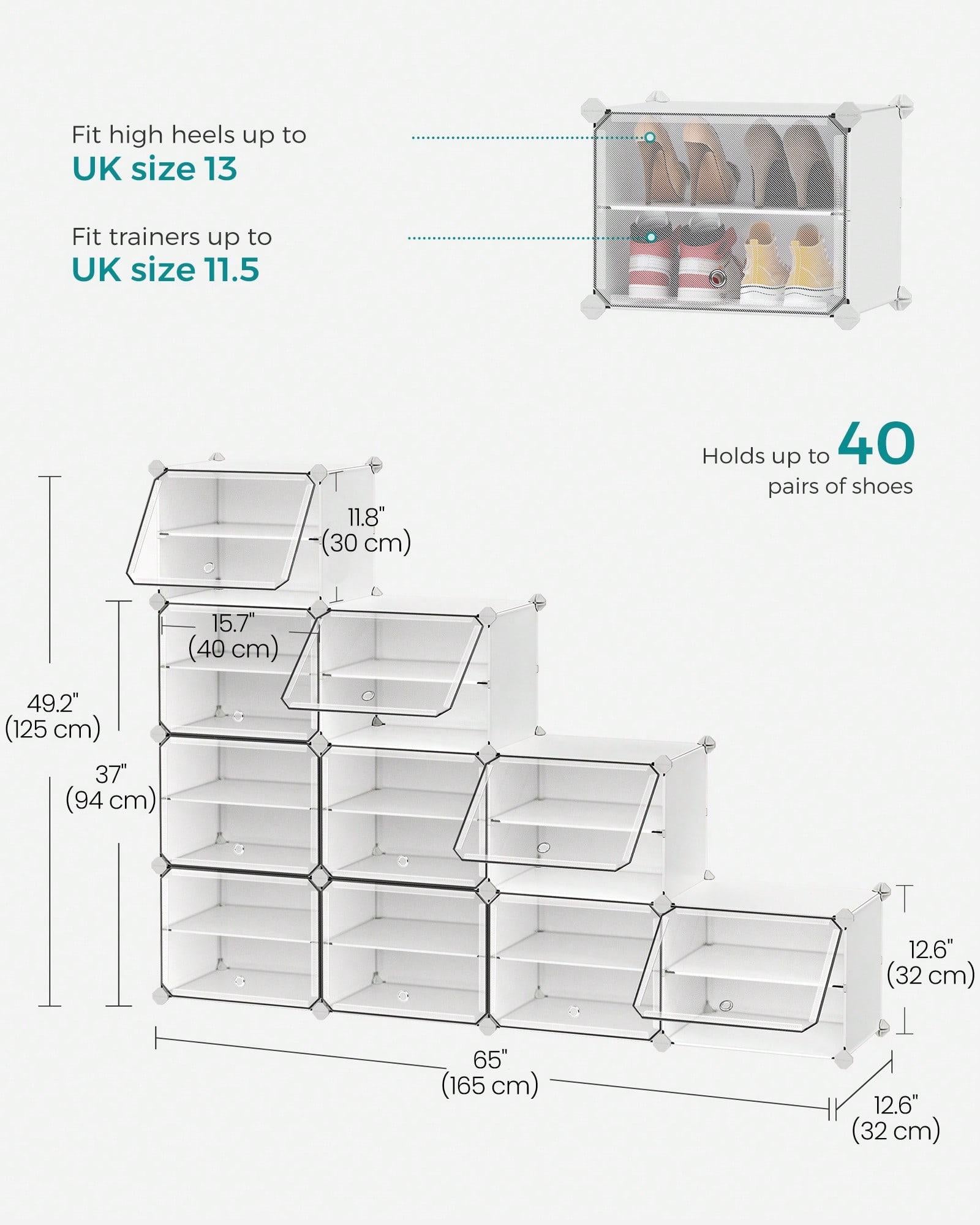 Interlocking Shoe Rack, Plastic Shoe Storage Cabinet, 10-Slot Modular Storage Organiser Unit, 30 X 40 X 30 Cm For Each Slot, With Doors, Steel Frame, Plastic Panels, White