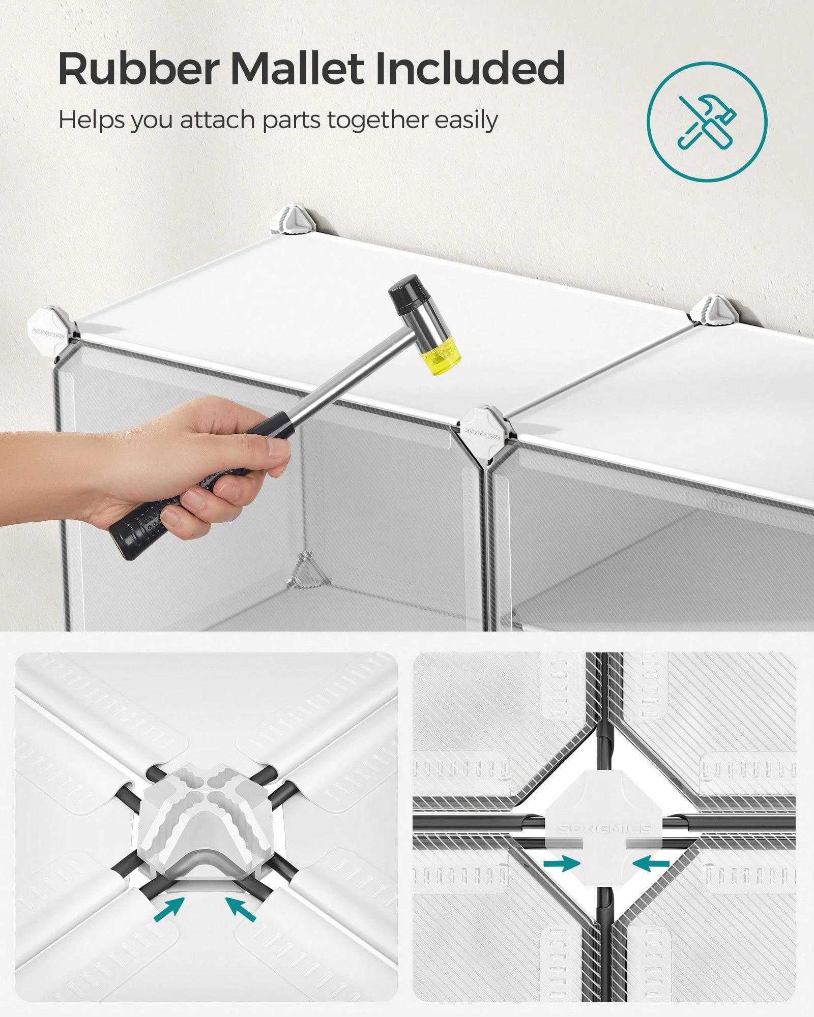[Easy Assembly and Disassembly] The included rubber mallet makes assembling this shoe rack quick and easy.This organiser can also be quickly disassembled to store or transport, letting you easily rearrange this around your home