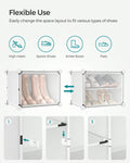 [Ventilated and Easy to Clean] This plastic shoe cabinet features clear doors, providing dust-proof and waterproof protection while allowing easy viewing of shoes inside.Grommets on the door enable effortless opening and