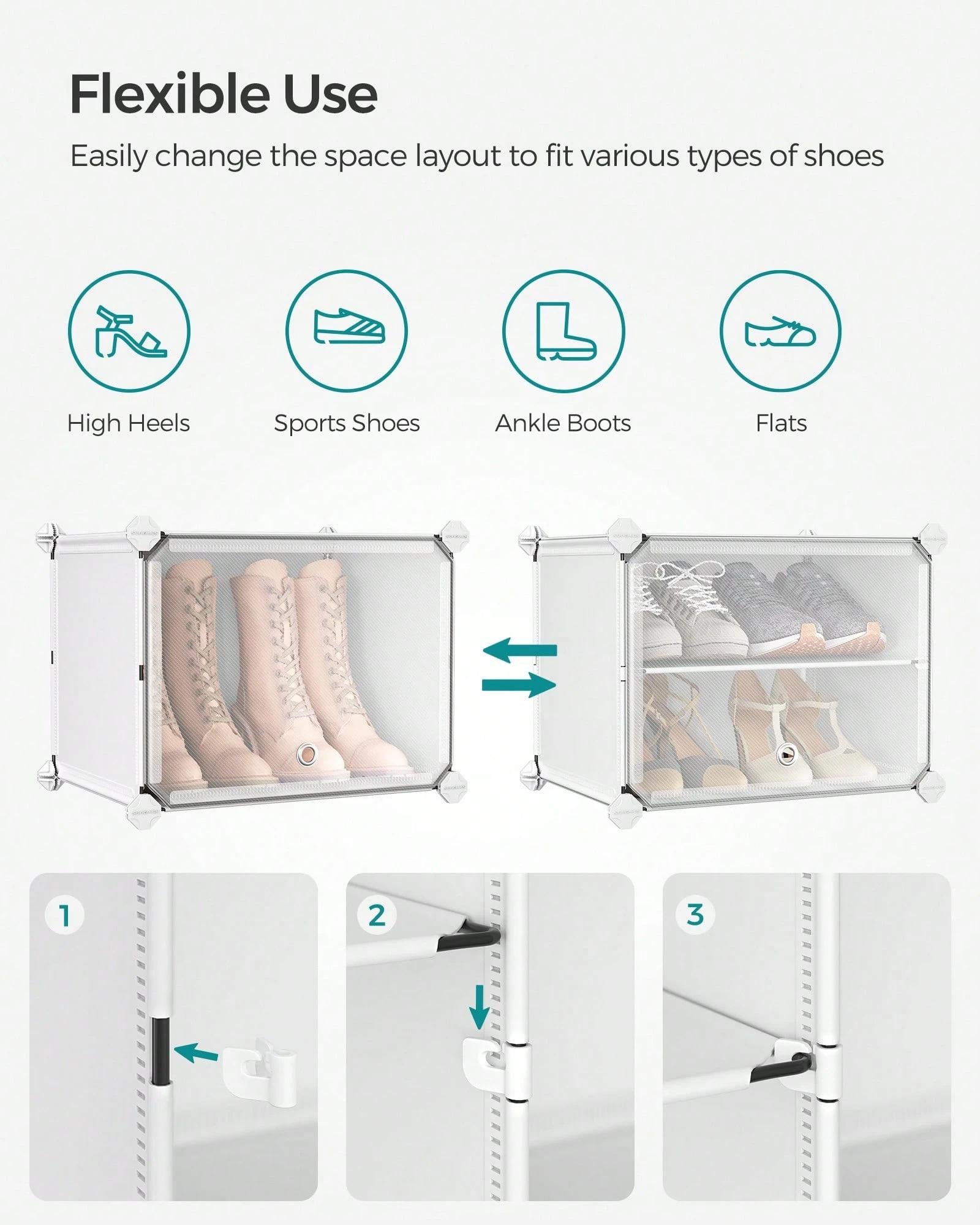 [Adaptable and Versatile] Configure this storage unit in different ways.Make it have 2 or 3 separate rows, or even divide it into 2 small shelf units to organise shoes, clothes, or toiletries in your hallway, bathroom, or any other desired space