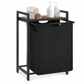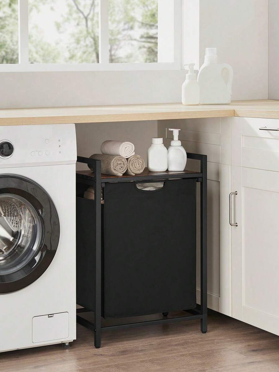 Laundry Basket, 1-Compartment Laundry Hamper, Pull-Out And Removable Laundry Bag, Shelf, Metal Frame, 65L, 50 X 33 X 72 Cm, Black & Chocolate Brown,White