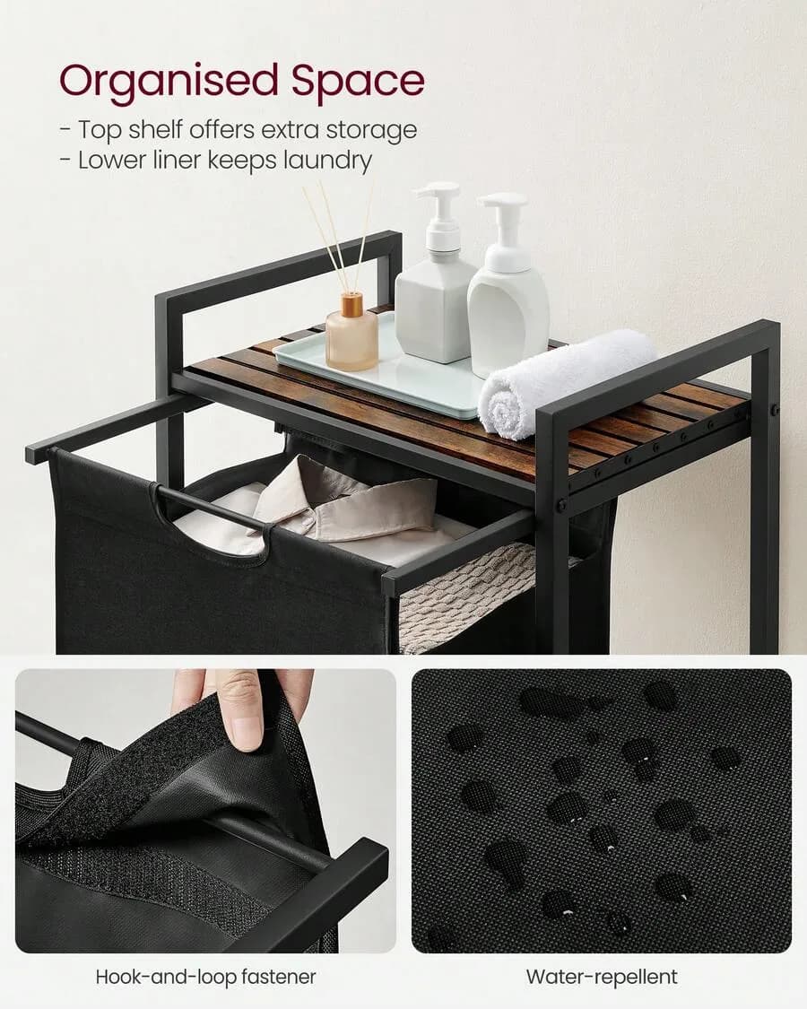 [Slatted Storage Shelf] This laundry hamper features a shelf, providing extra space to organise detergents or toiletries.Its slatted design allows air to flow through for good ventilation, preventing odour build-up from laundry