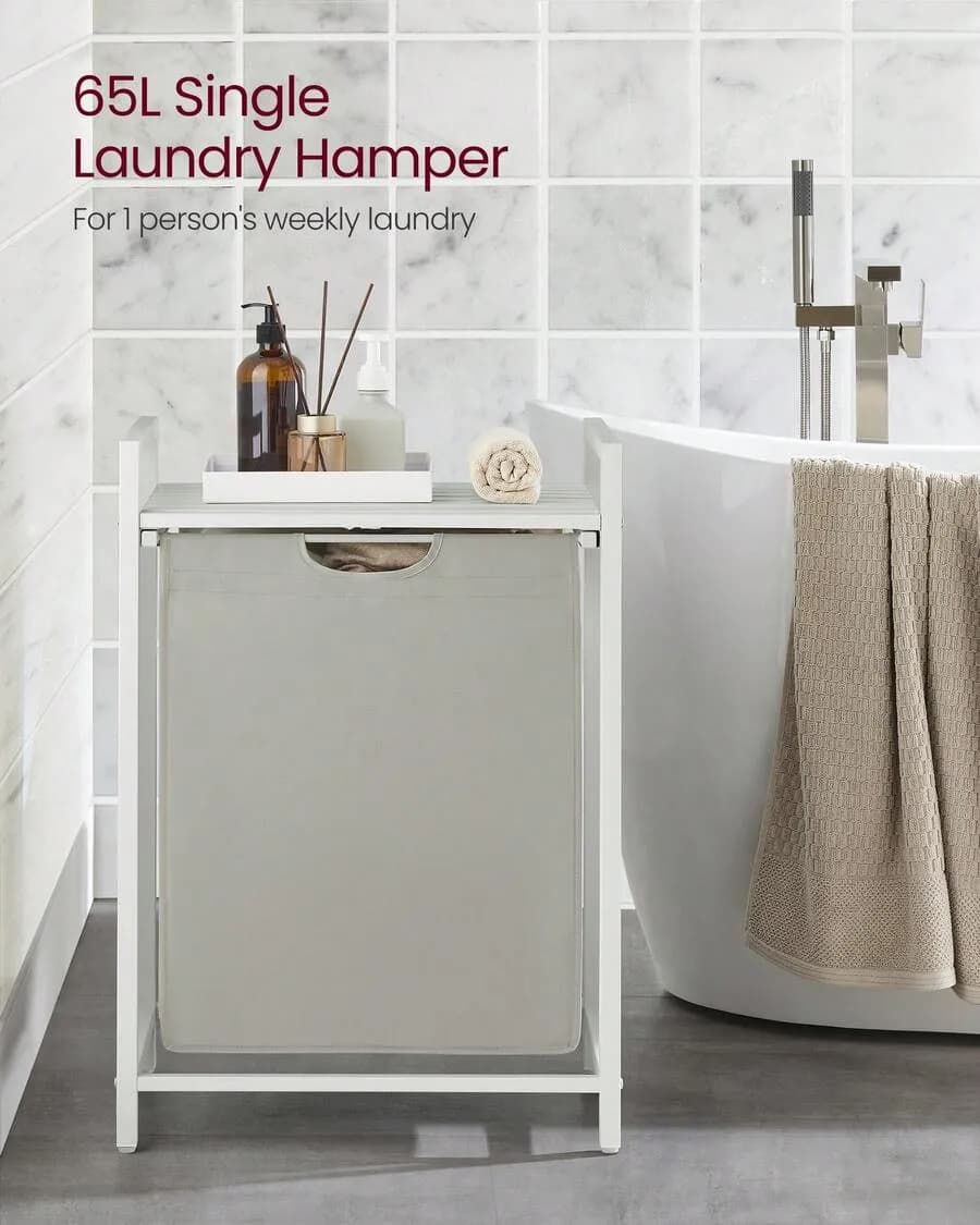 [Single Basket for Small Spaces] This single 65 L laundry basket can hold a week's worth of laundry for one person.Measuring 50 x 33 x 72 cm, this compact basket is perfect for maximizing small spaces and corners in your bathroom, laundry room, or bedroom