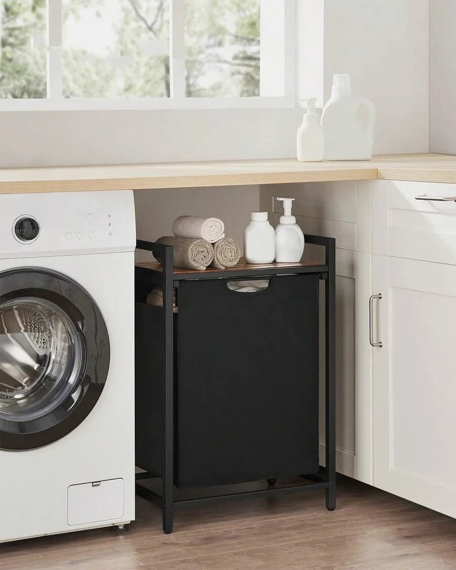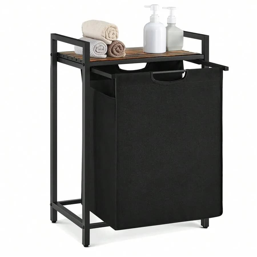 [Versatile] This versatile laundry hamper fits seamlessly into any room, whether it's your laundry room, bathroom, or bedroom. Should there be any water on the shelf during use, immediately wipe it off with a dry cloth