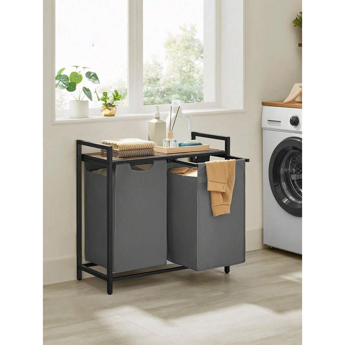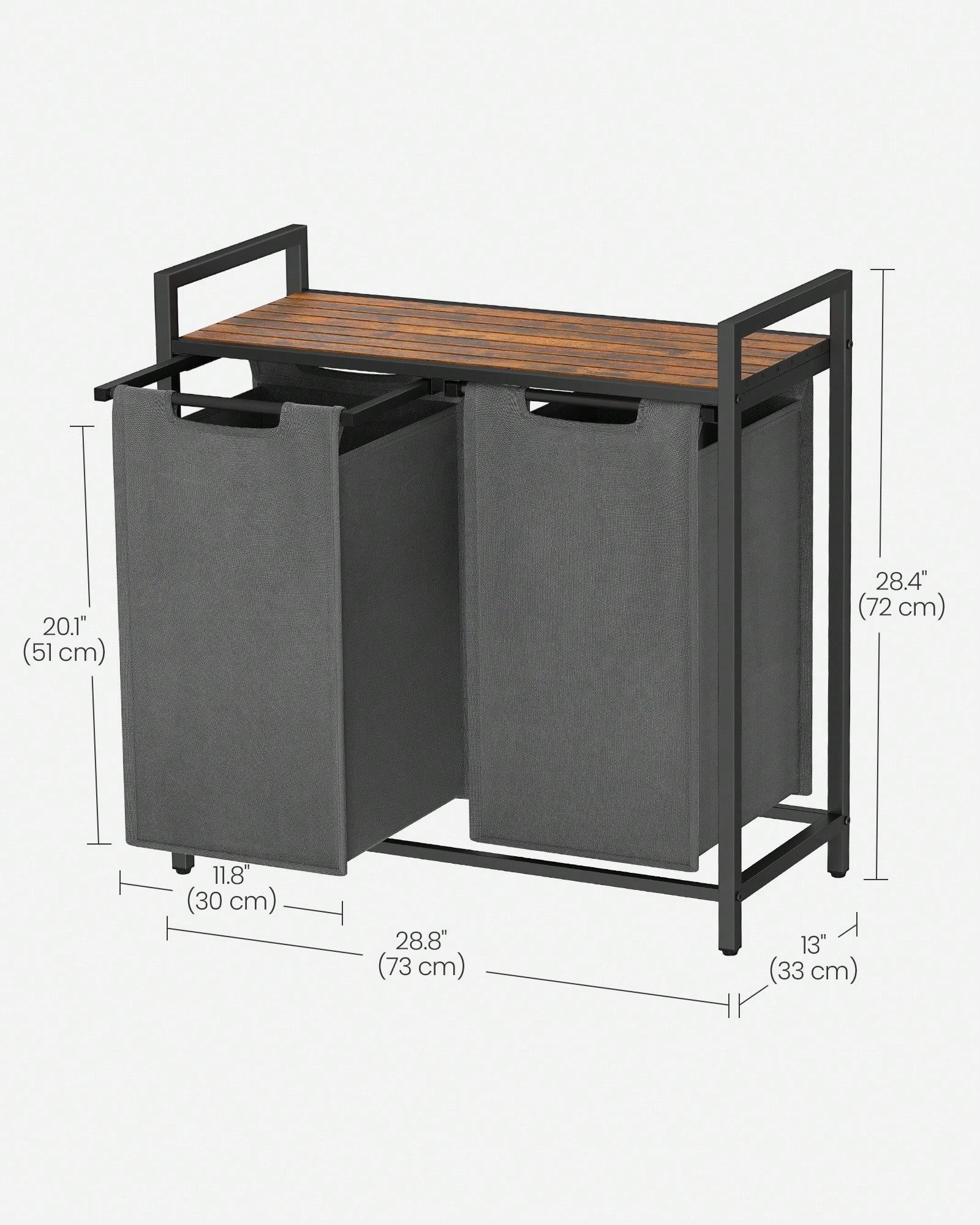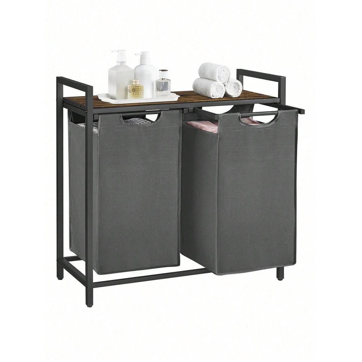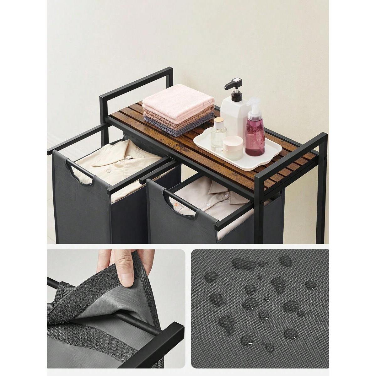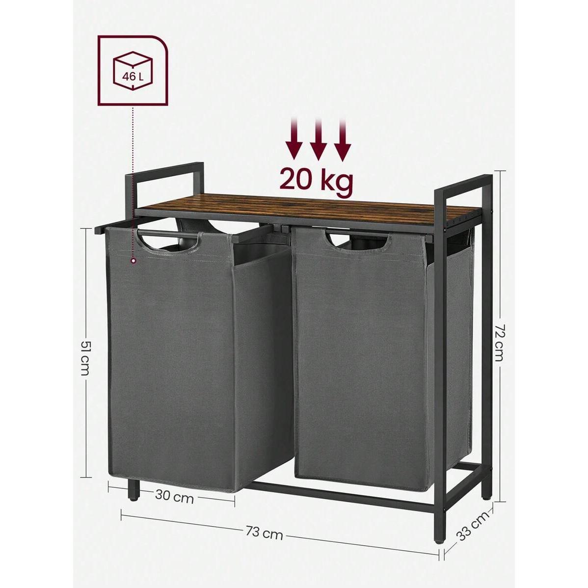 Laundry Basket, 2-Compartment Laundry Hamper, Pull-Out And Removable Laundry Bags, Laundry Sorter, Shelf, Metal Frame, 2 X 46L, 73 X 33 X 72 Cm, Rustic Brown And Grey