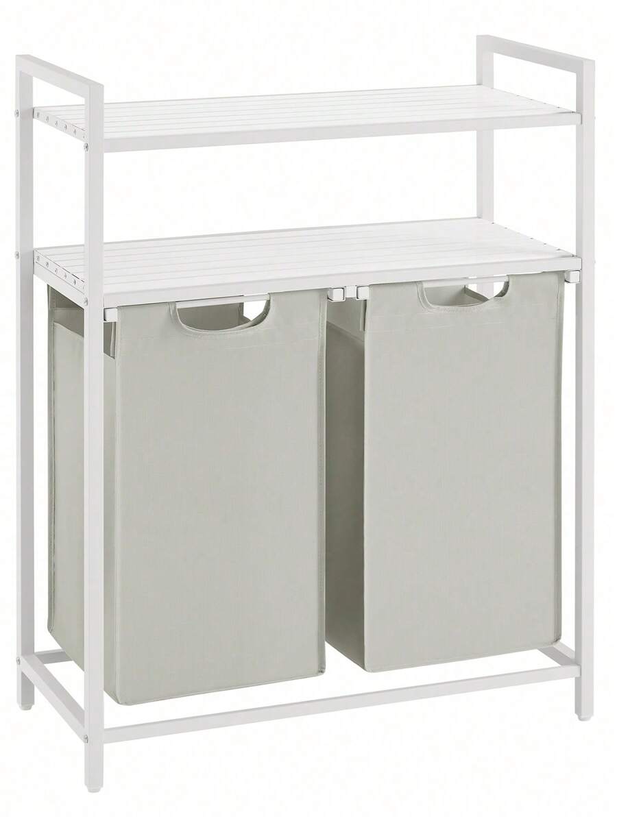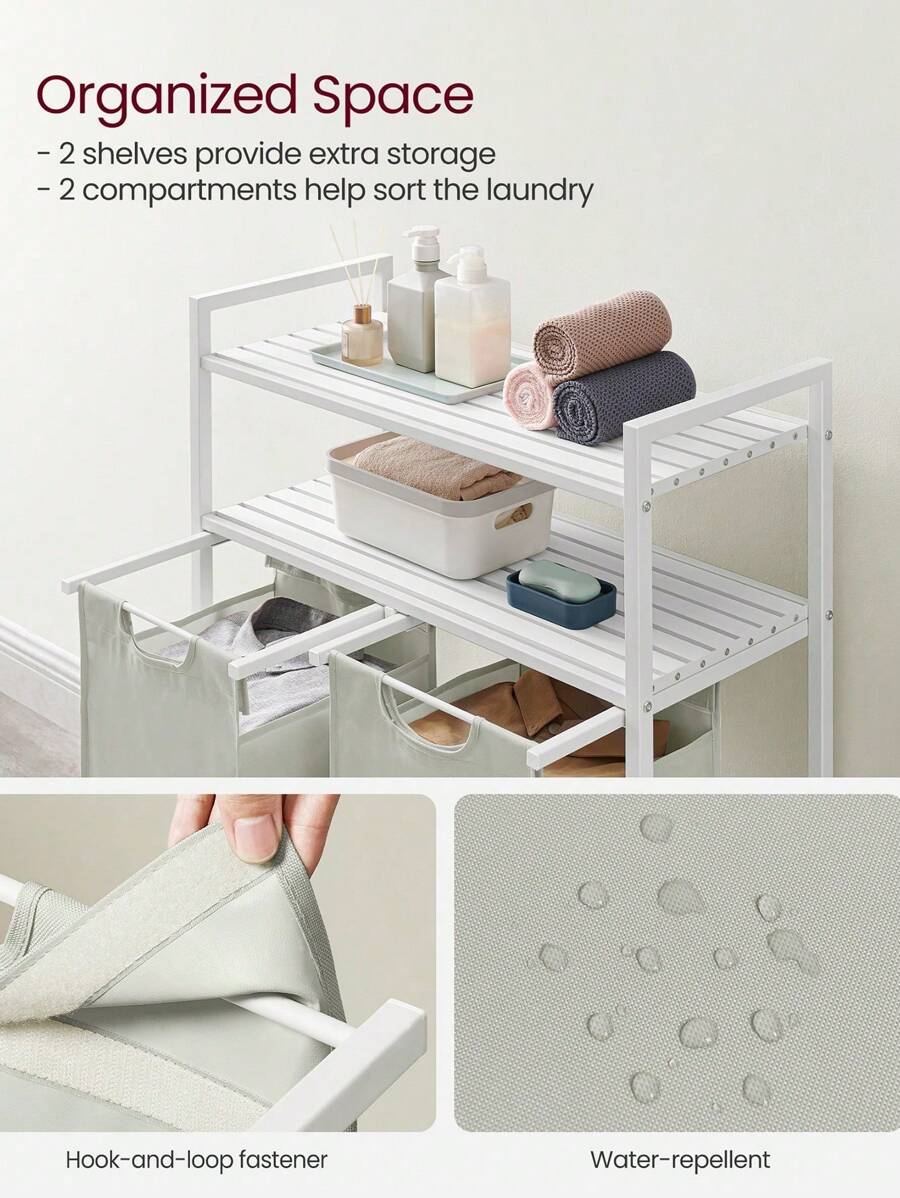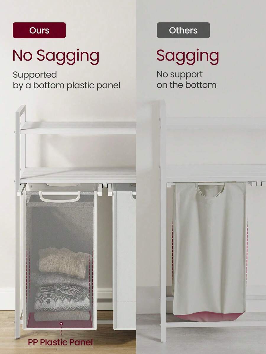[Practical & Versatile] This laundry sorter comes in handy in your laundry room, bathroom, or bedroom.It features 2 liners and 2 shelves, enabling you to hide messes and organise your laundry items with ease