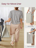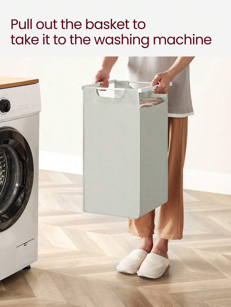[2 Compartments for Divided Storage] This laundry basket has a total capacity of 92L, with each liner holding 46L.Its 2-compartment design enables you to organise your laundry by type and separate light laundry from dark ones