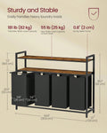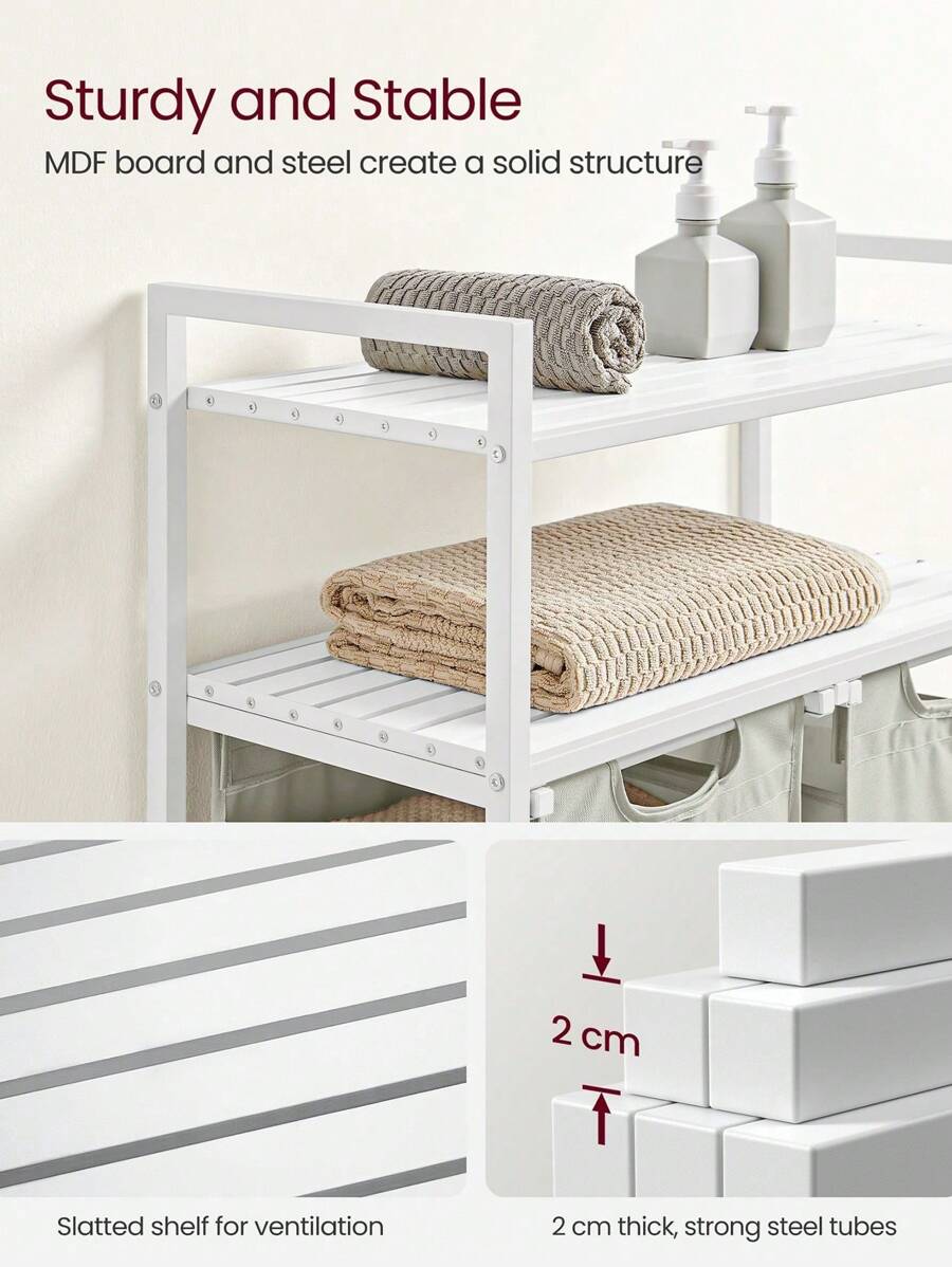 [Sturdy & Stable] Crafted with a 2 cm steel tube frame and MDF panel, this laundry basket supports up to 20 kg on each top shelf.In addition, each liner is made of water-repellent Oxford fabric, and the four adjustable feet provide stability