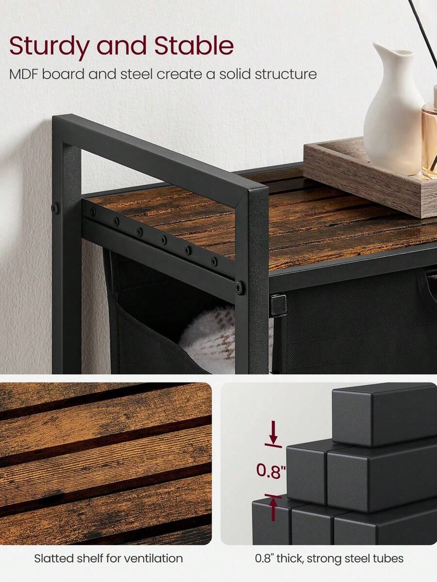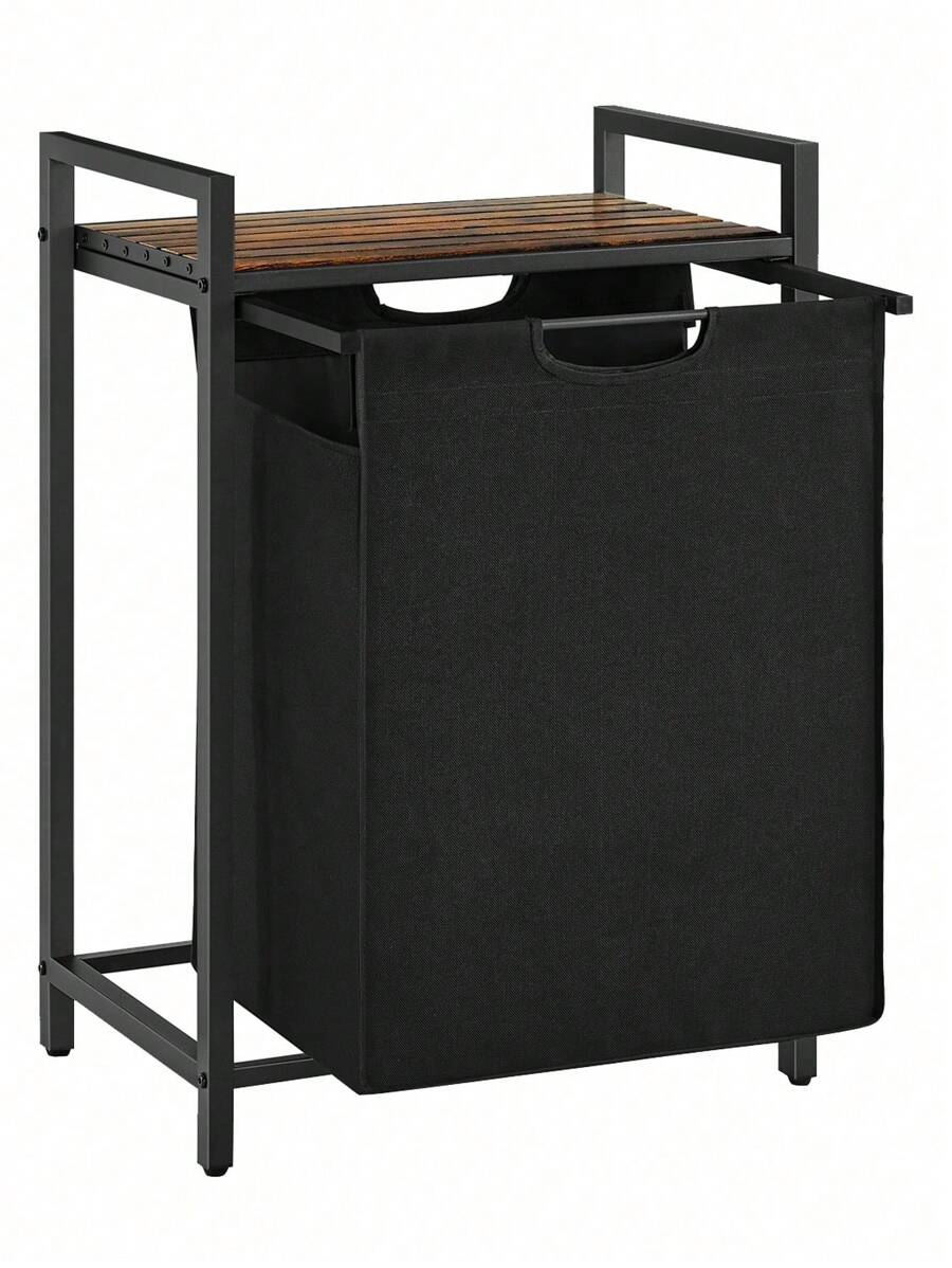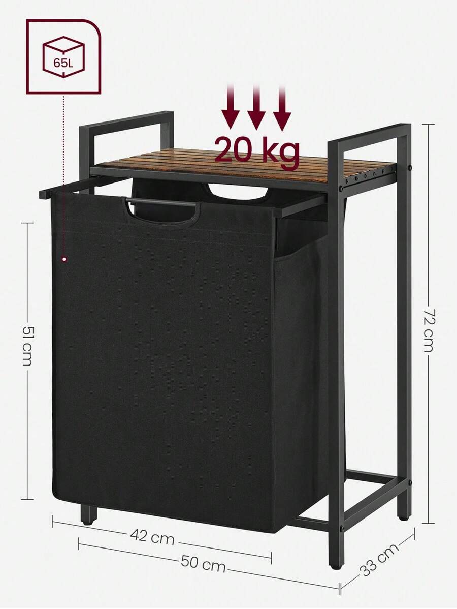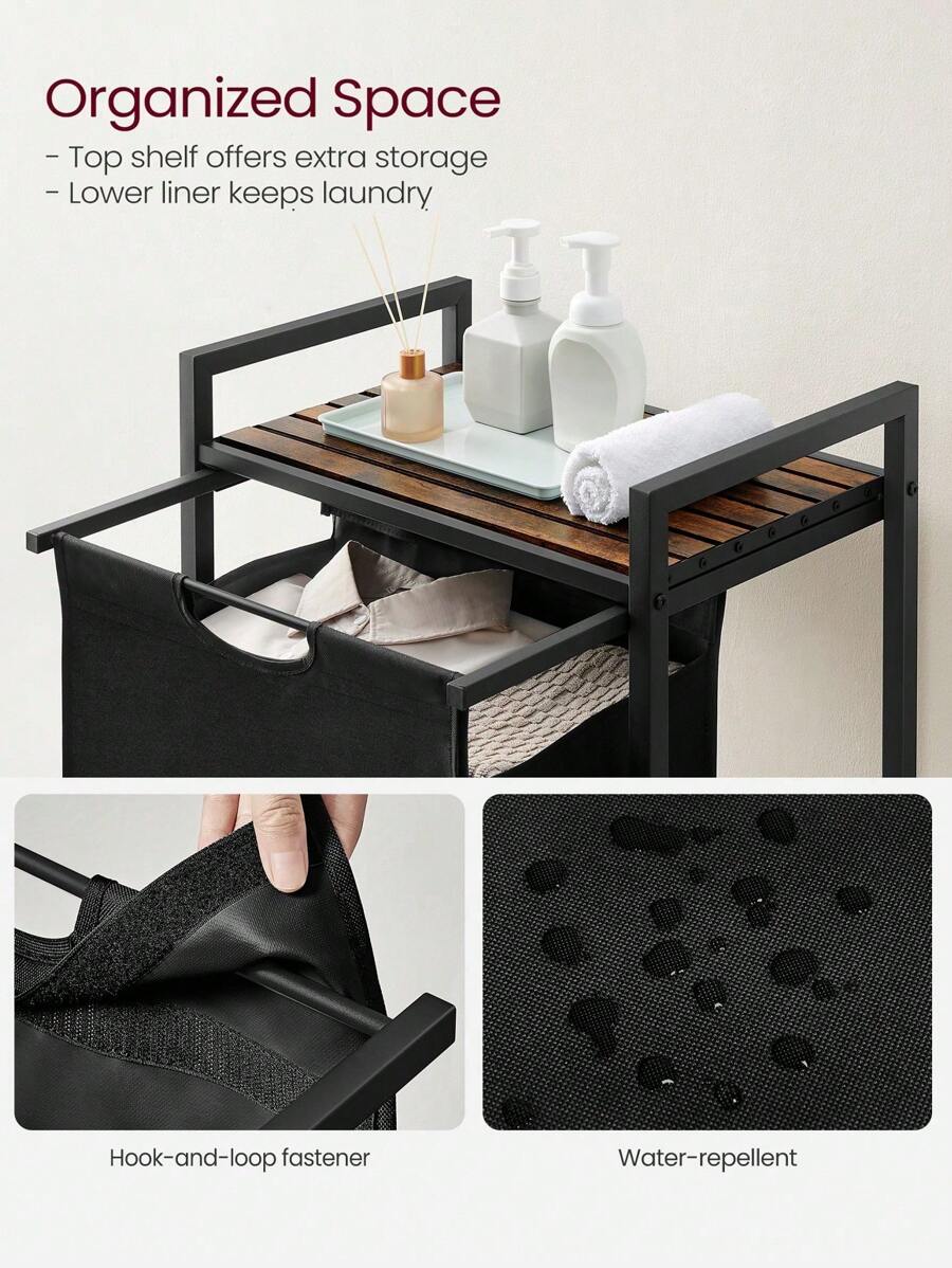Laundry Basket, Laundry Hamper, Pull-Out And Removable Laundry Bag, Shelf, Metal Frame, 65L, 50 X 33 X 72 Cm, Rustic Brown And Black, Rustic Brown And Black