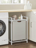 [Slatted Storage Shelf] This laundry hamper features a shelf, providing extra space to organise detergents or toiletries.Its slatted design allows air to flow through for good ventilation, preventing odour build-up from laundry