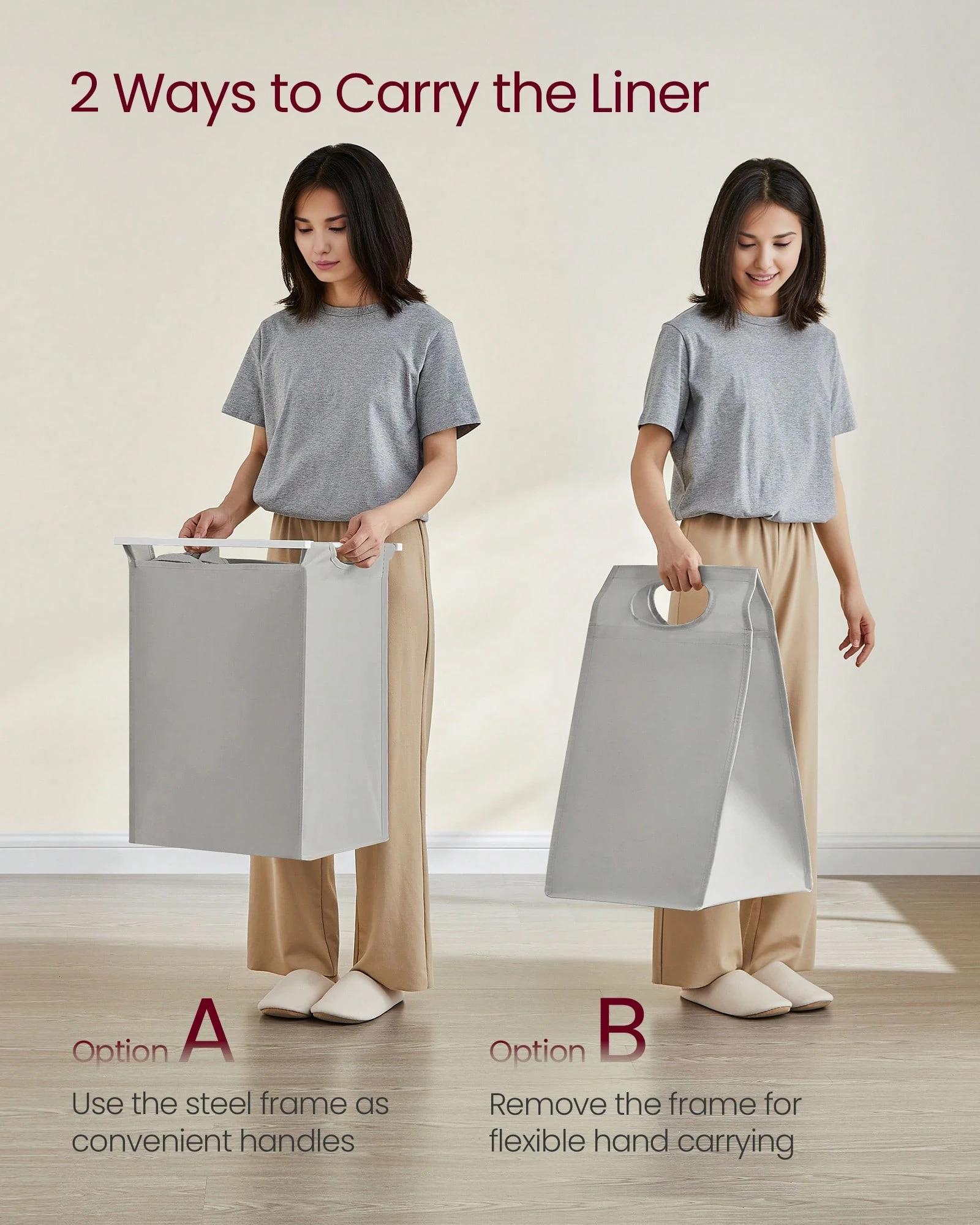 [Pull-Out and Removable Liner] The liner is equipped with a plastic bottom panel to prevent sagging, and thanks to the hook-and-loop fastener, you can effortlessly pull out and remove the liner to easily transport it to the washing machine