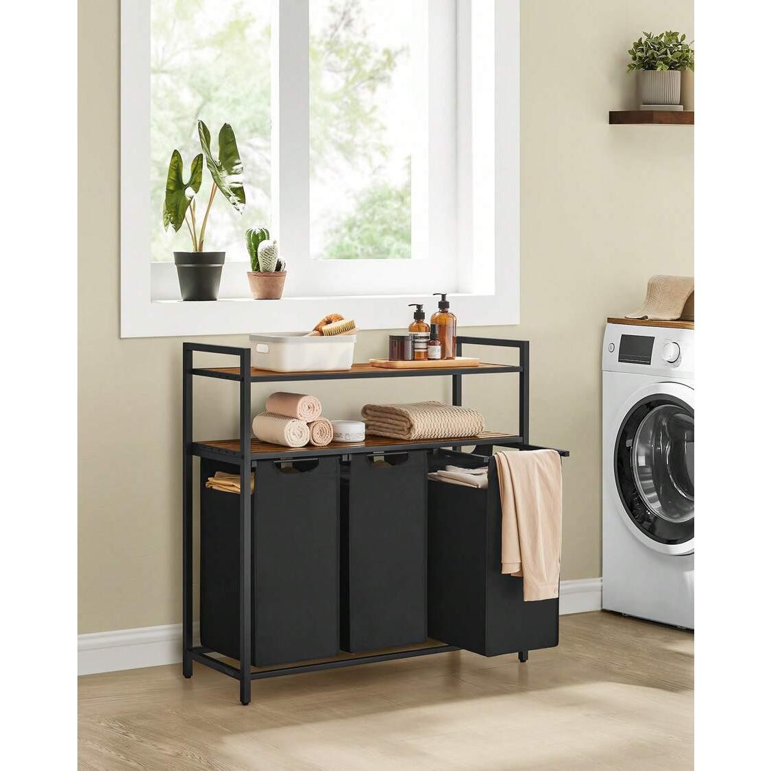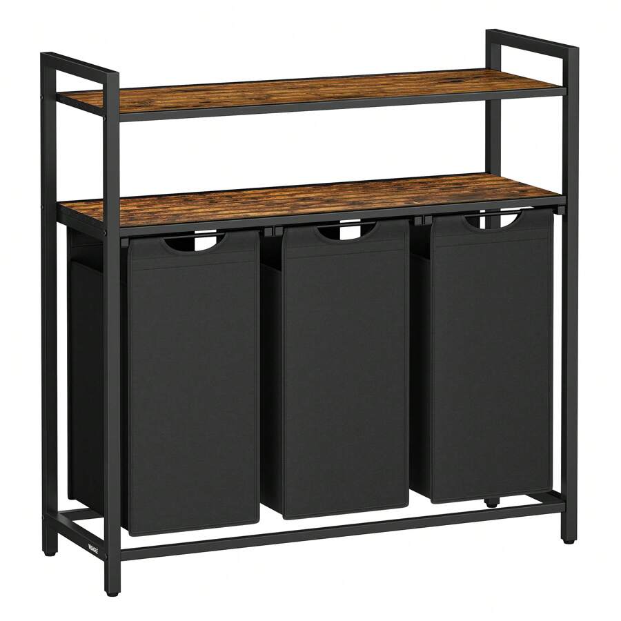 Laundry Basket, Laundry Hamper With 3 Pull-Out And Removable Laundry Bags, 2 Shelves, 40 L Capacity Per Bag, For Laundry Room, Rustic Brown And Black