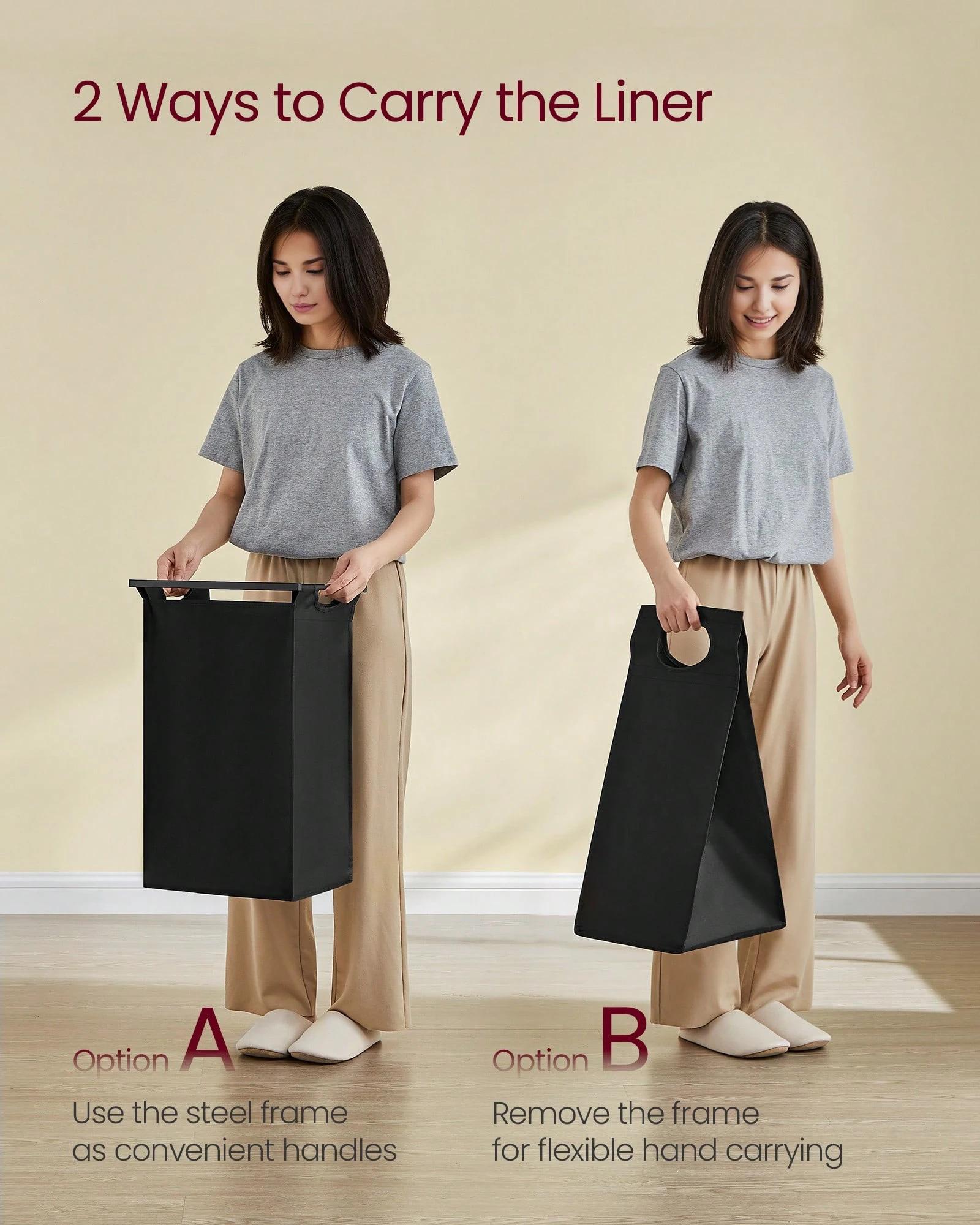 [3 Compartments for Divided Storage] This laundry basket has a total capacity of 120 L, with each liner holding 40 L. Its 3-compartment design enables you to organise your laundry by type and separate light laundry from dark ones