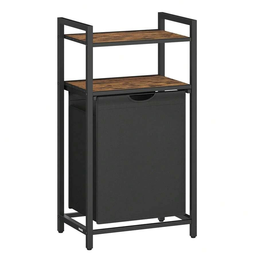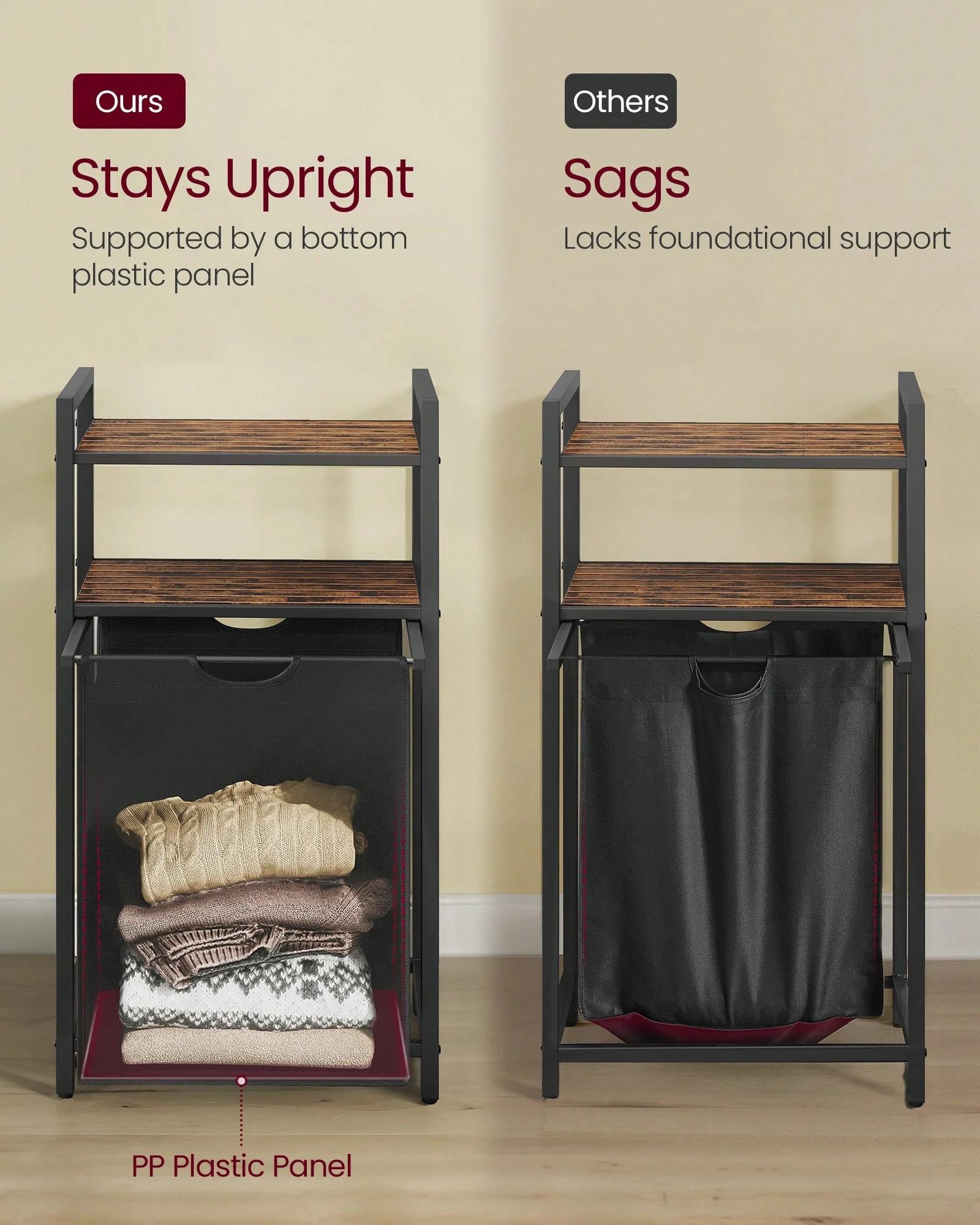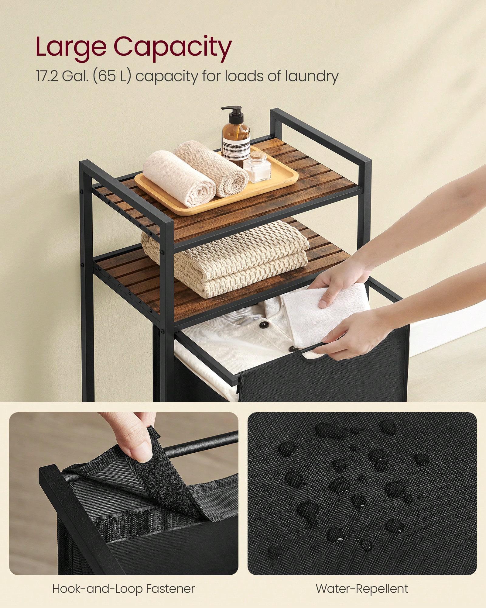 Laundry Basket, Laundry Hamper With A Pull-Out And Removable Laundry Bag, 2 Shelves, 65 L Capacity Per Bag, For Laundry Room, Rustic Brown And Black