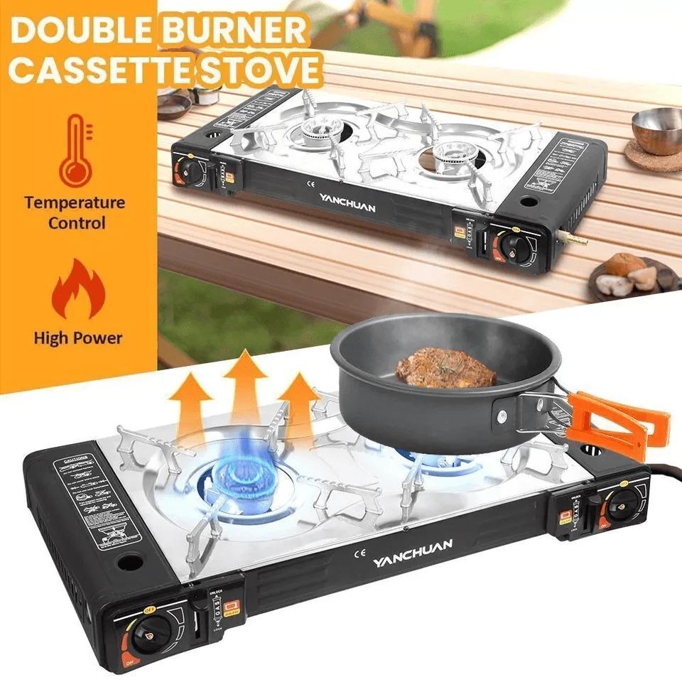 Portable Double 2 Burner Gas Stove Camping Butane Cooker Barbecue Gas Cannister
