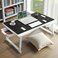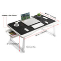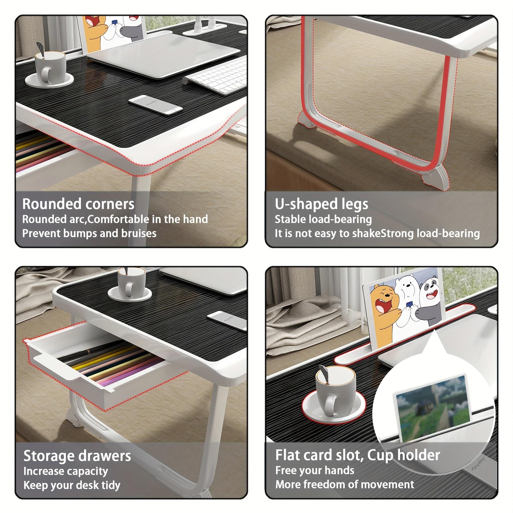 The laptop bed tray comes with a side drawer, a slot for cards, and a cup holder. It is perfect for lounging in bed, serving as a stand for books or tablets, enjoying breakfast, reading, or watching movies while on the bed or sofa. It is lightweight yet robust. The alloy legs of the table provide excellent stability, are resistant to scratches, and have a smooth, moisture-proof surface, offering high load capacity and durability.