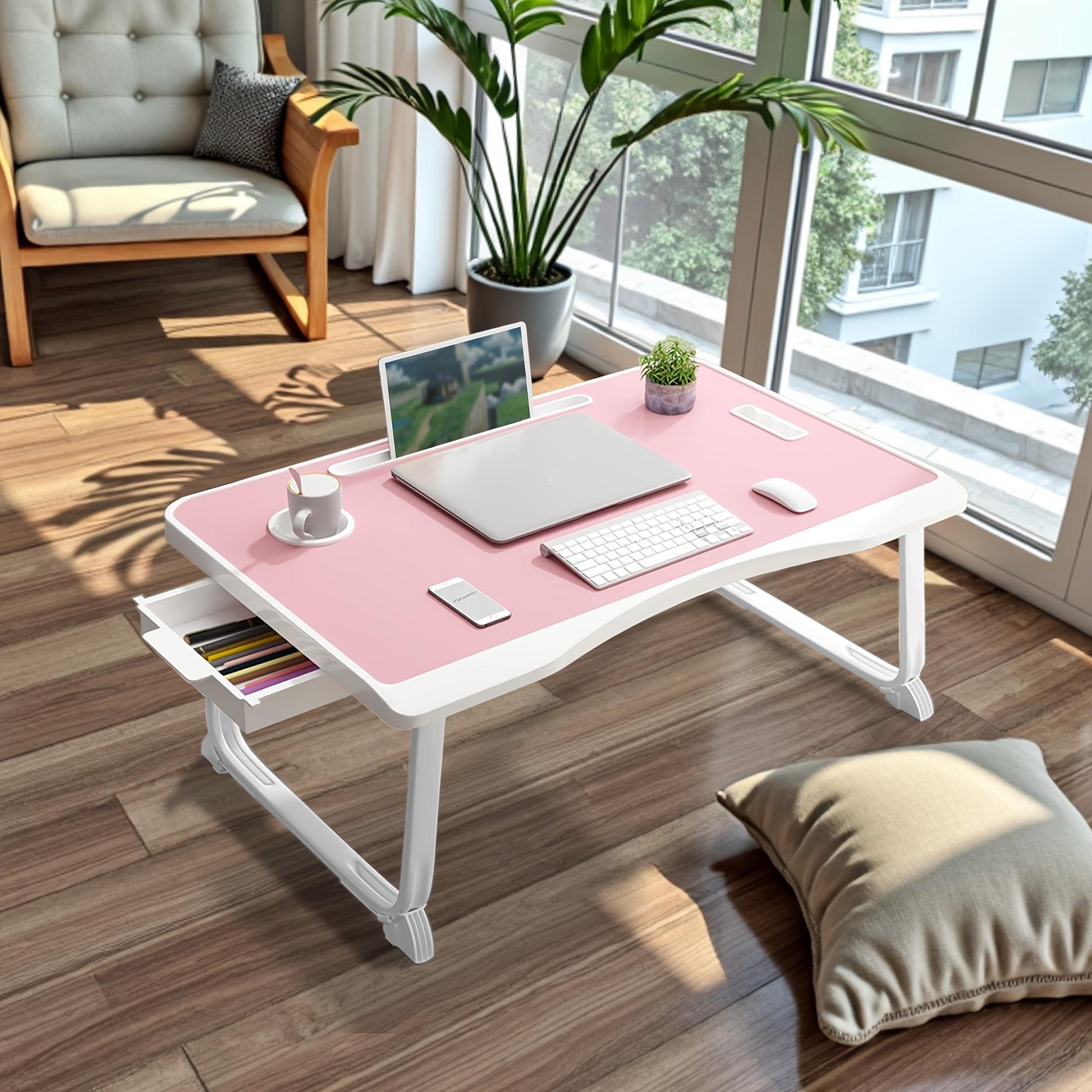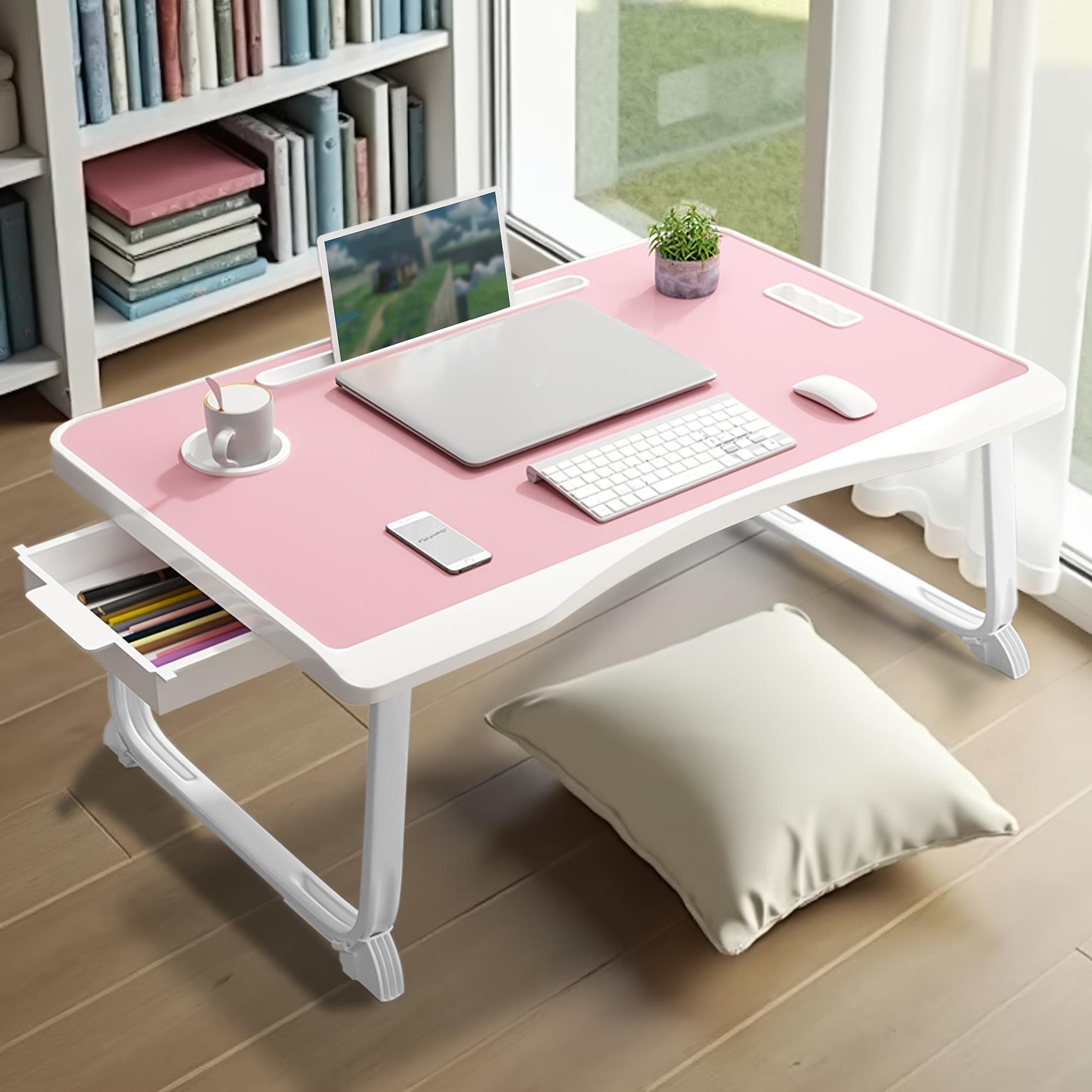 Portable Laptop Desk Bed Table with Handle - Adjustable Height, Side Drawer & Cup Slot, Ergonomic Notebook Stand for Bed, Sofa, Travel - Lightweight Sturdy Design with Storage Shelf-like Top - Ideal for Working, Eating, Reading (Black, Red, White, Blue) -