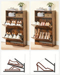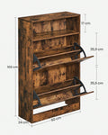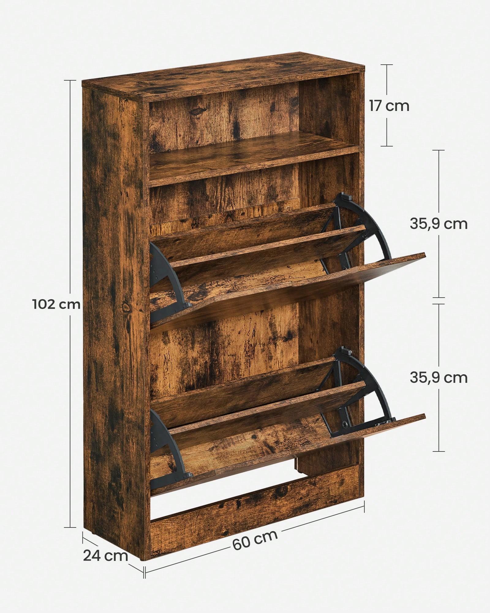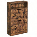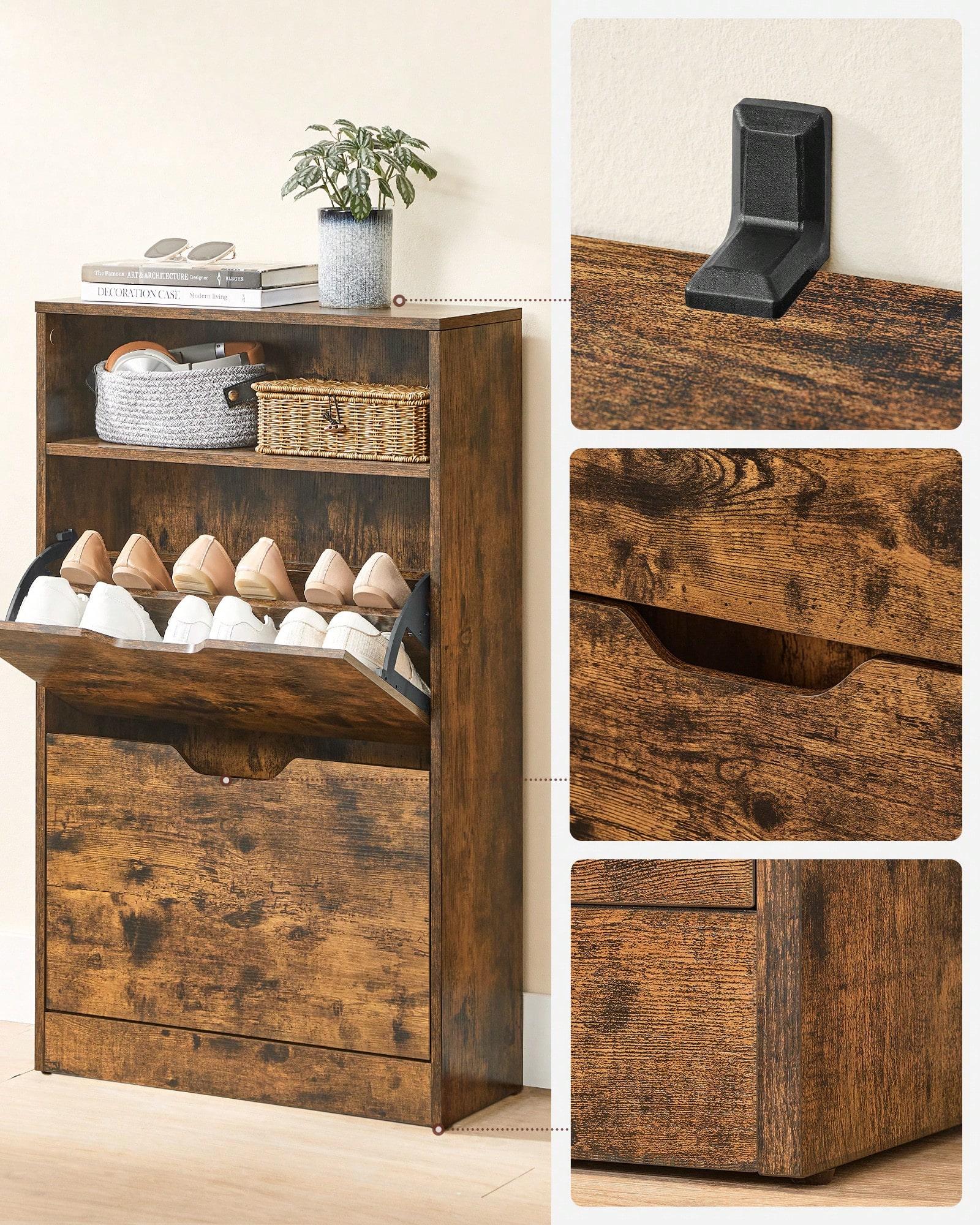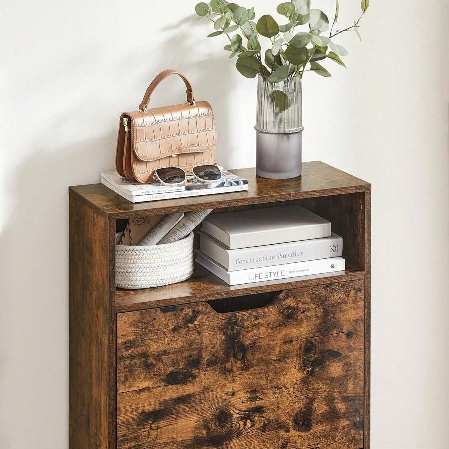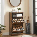Shoe Cabinet 2 Flip Doors, 3 Tier Shoe Rack, With 1 Open Compartment, Adjustable And Removable Divider, For 8-12 Pairs Shoes, For Narrow Entrance, 24 X 60 X 102 Cm, Rustic Brown