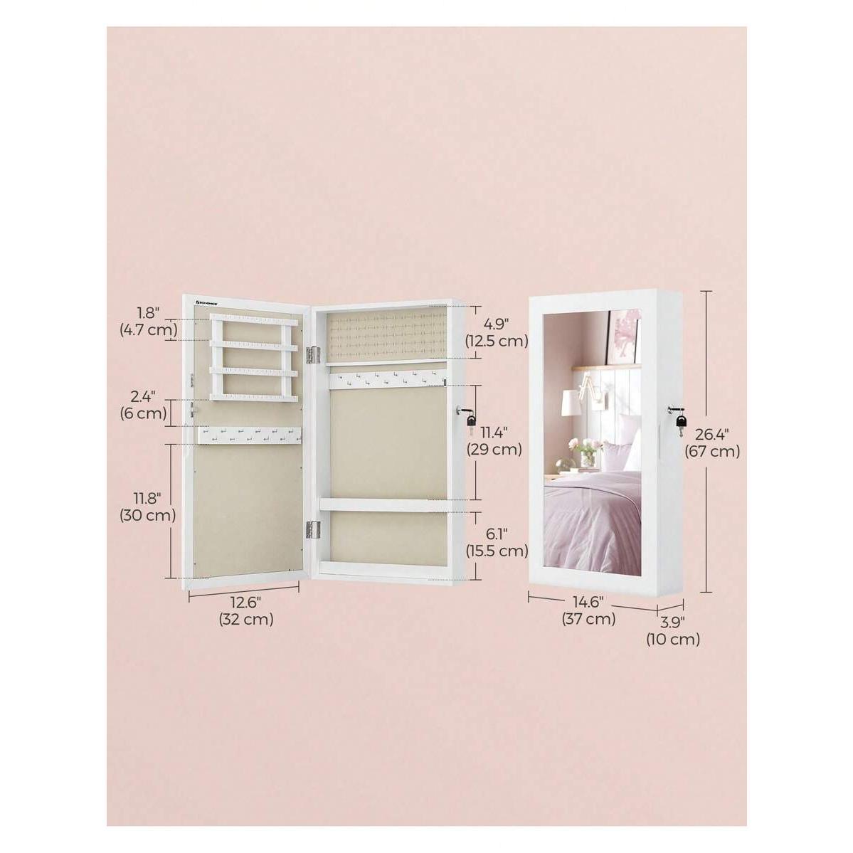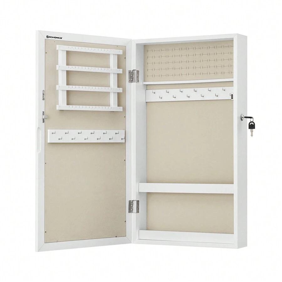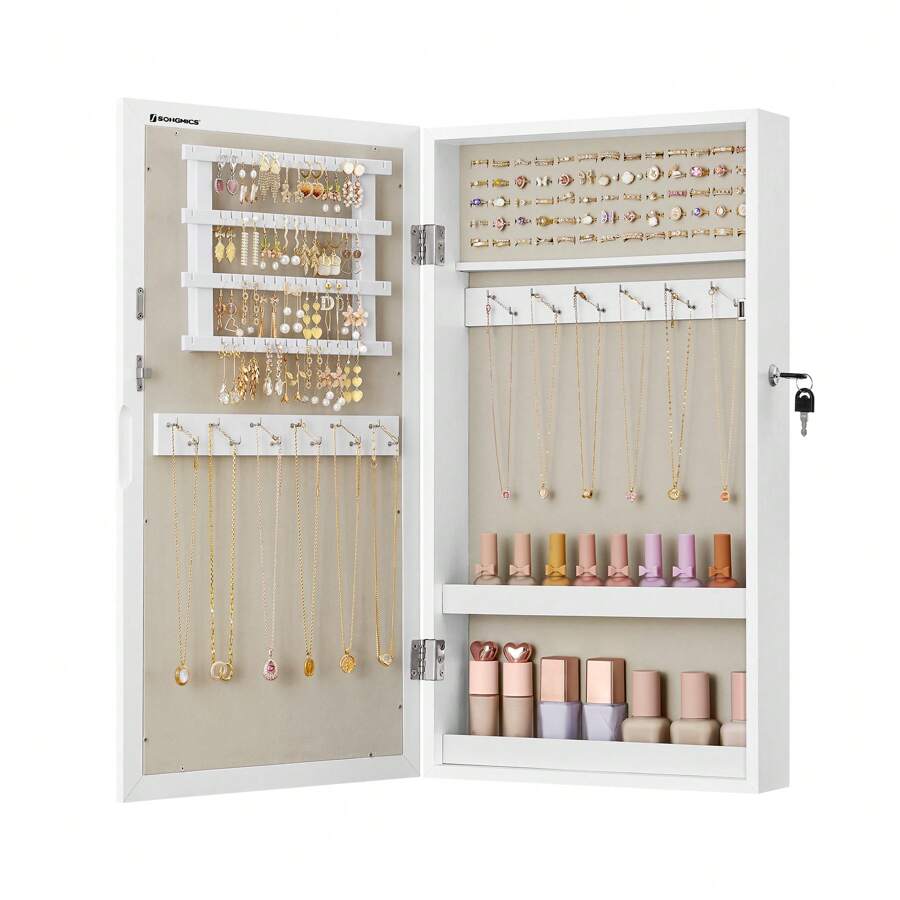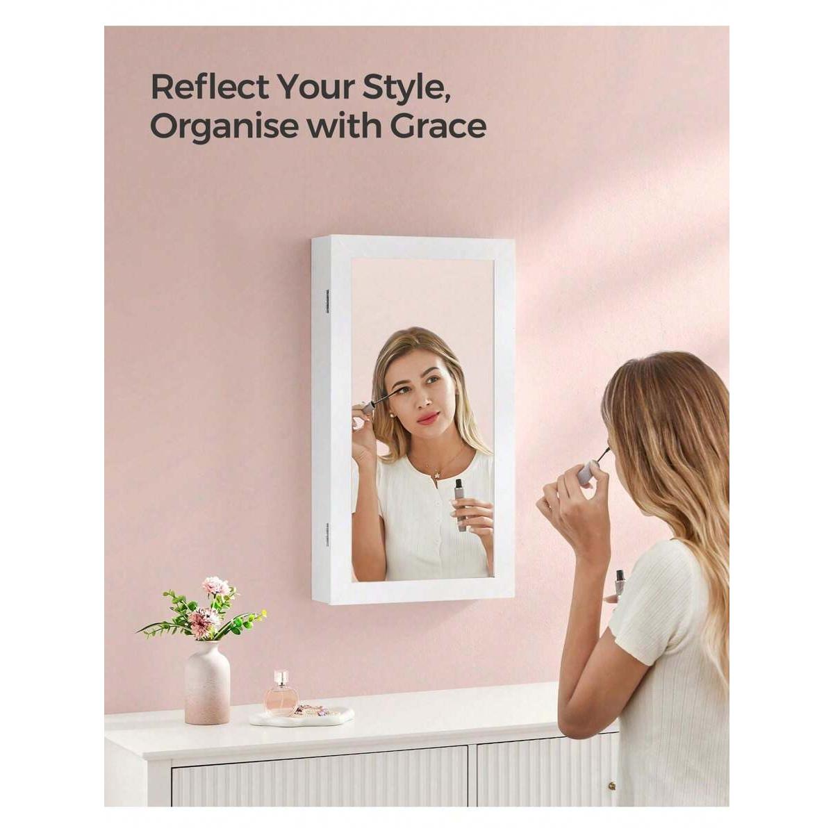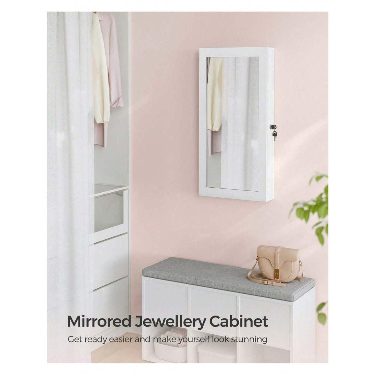 Wall-Mounted Jewellery Cabinet, Mirror With Storage, Lockable Mirrored Cabinet, Jewellery Organiser With Mirror, Space-Saving