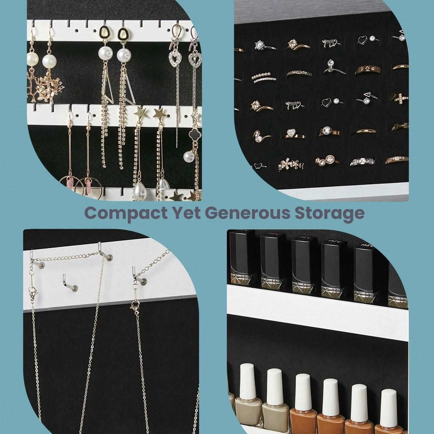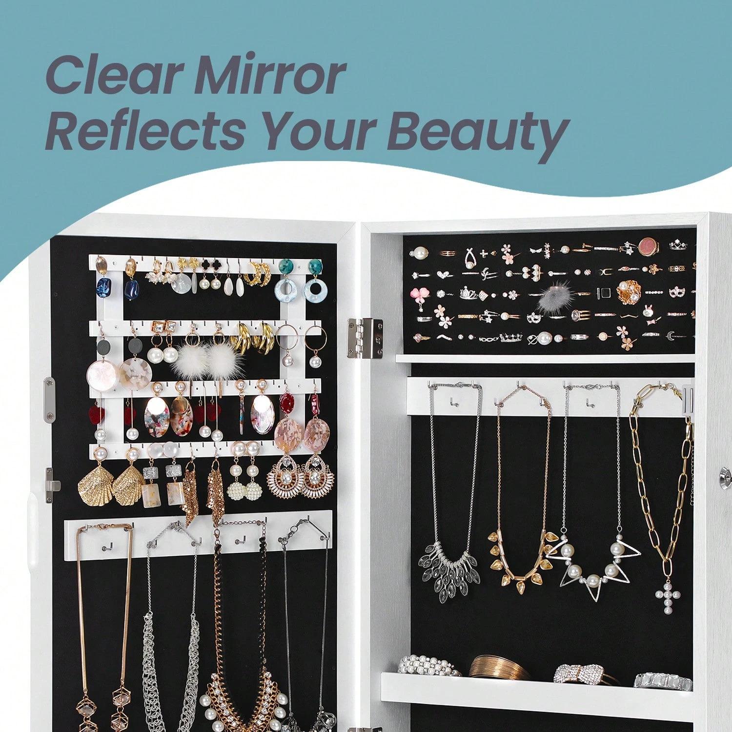 [Mirror or Cabinet?Both!]No more running around the house looking for a mirror.Get your accessories from this jewellery cabinet, and the mirrored door will tell you which piece fits you perfectly