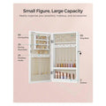 [Space-Saving Yet Spacious] Sized at 10 x 37 x 67 cm, this jewellery cabinet takes up only a little wall space but offers plenty of storage space: 2 shelves, 65 ring slots, 64 earring slots, 24 earring stud holes, and 24 necklace hooks